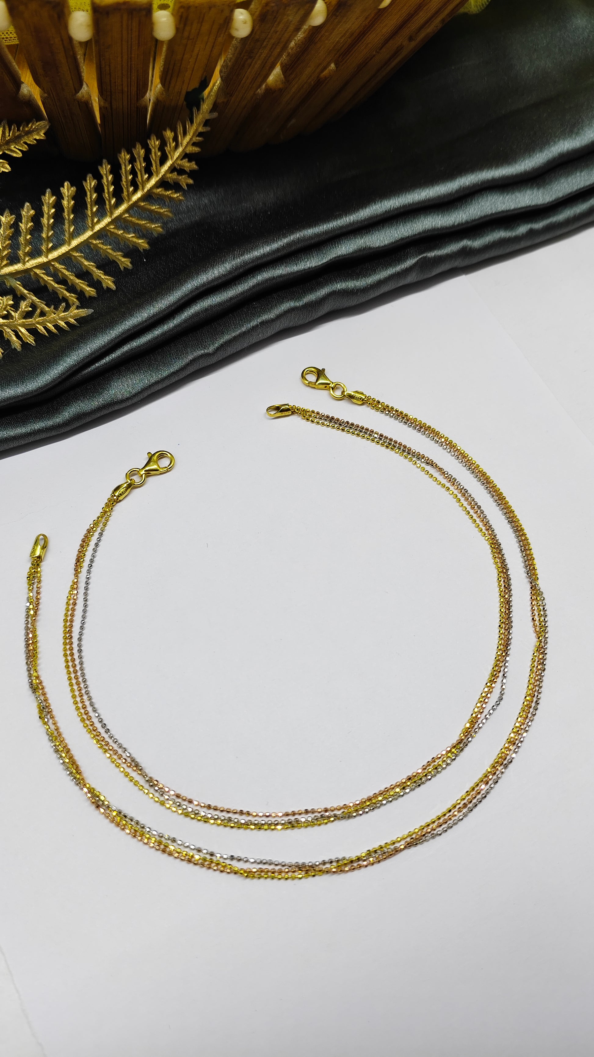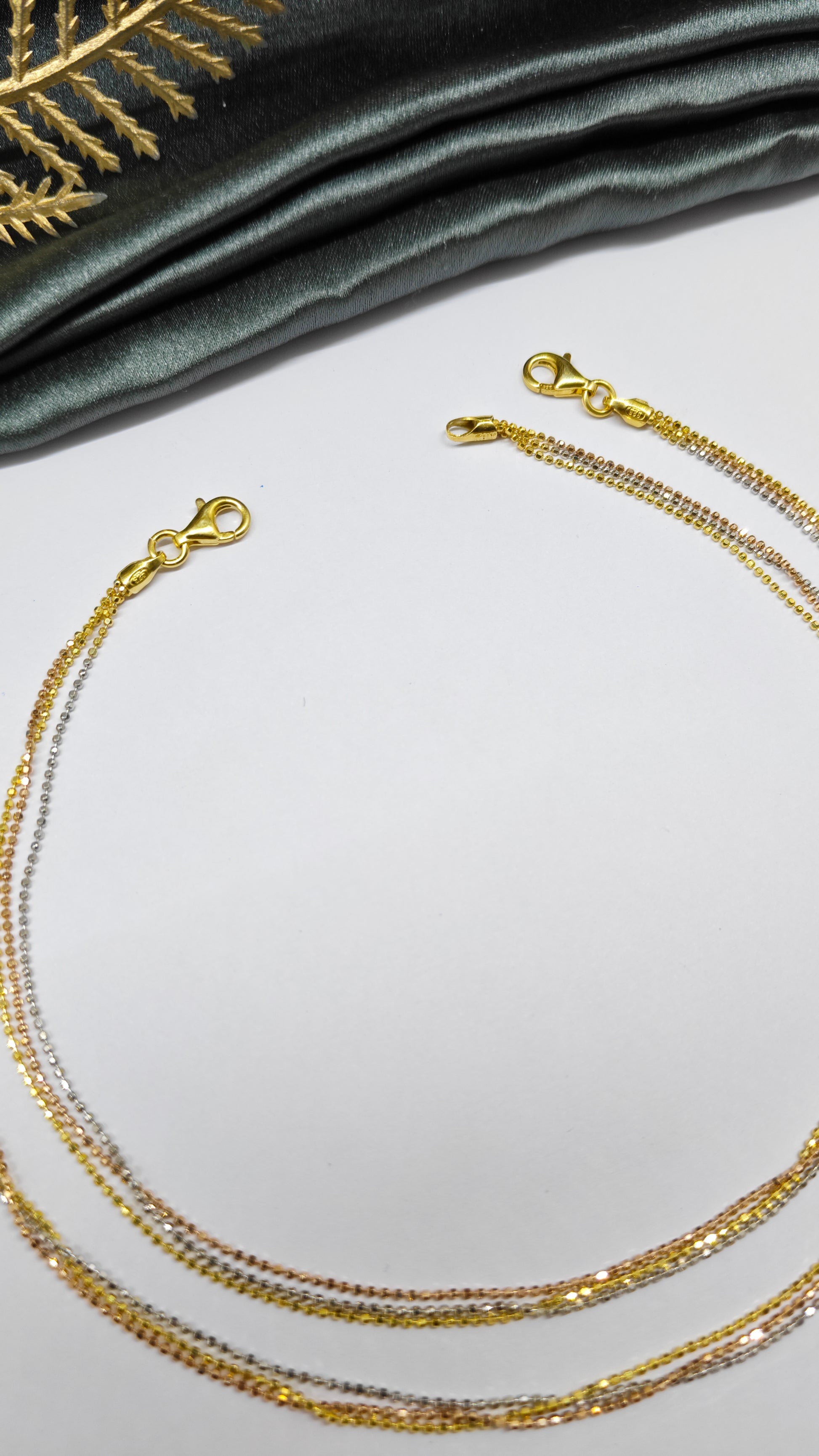 925 Silver 3 Layer Tone Rose Gold-Gold-Silver Colour Small Balls Design Anklet Pair