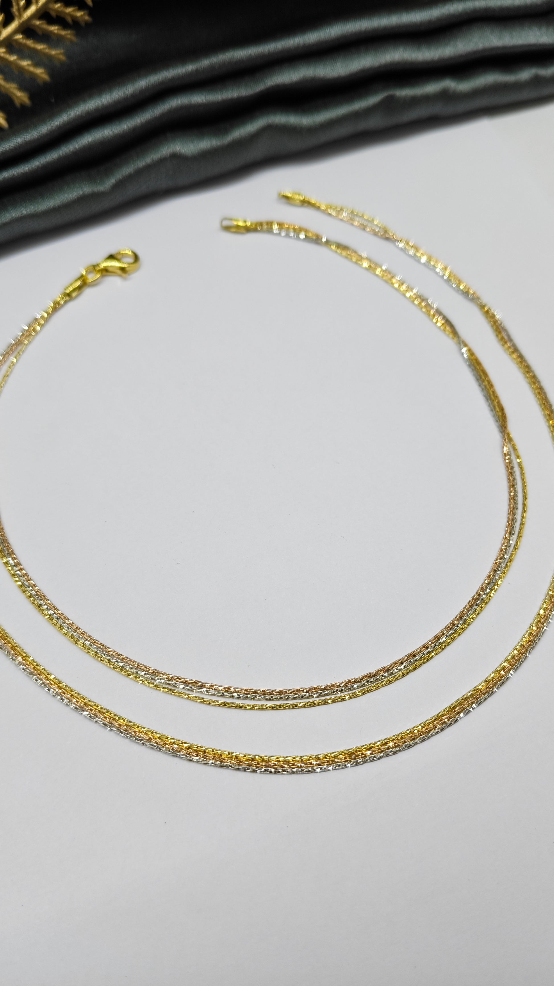 925 Silver 3 Layer Tone Rose-Gold-Silver Colour Design Anklet Pair