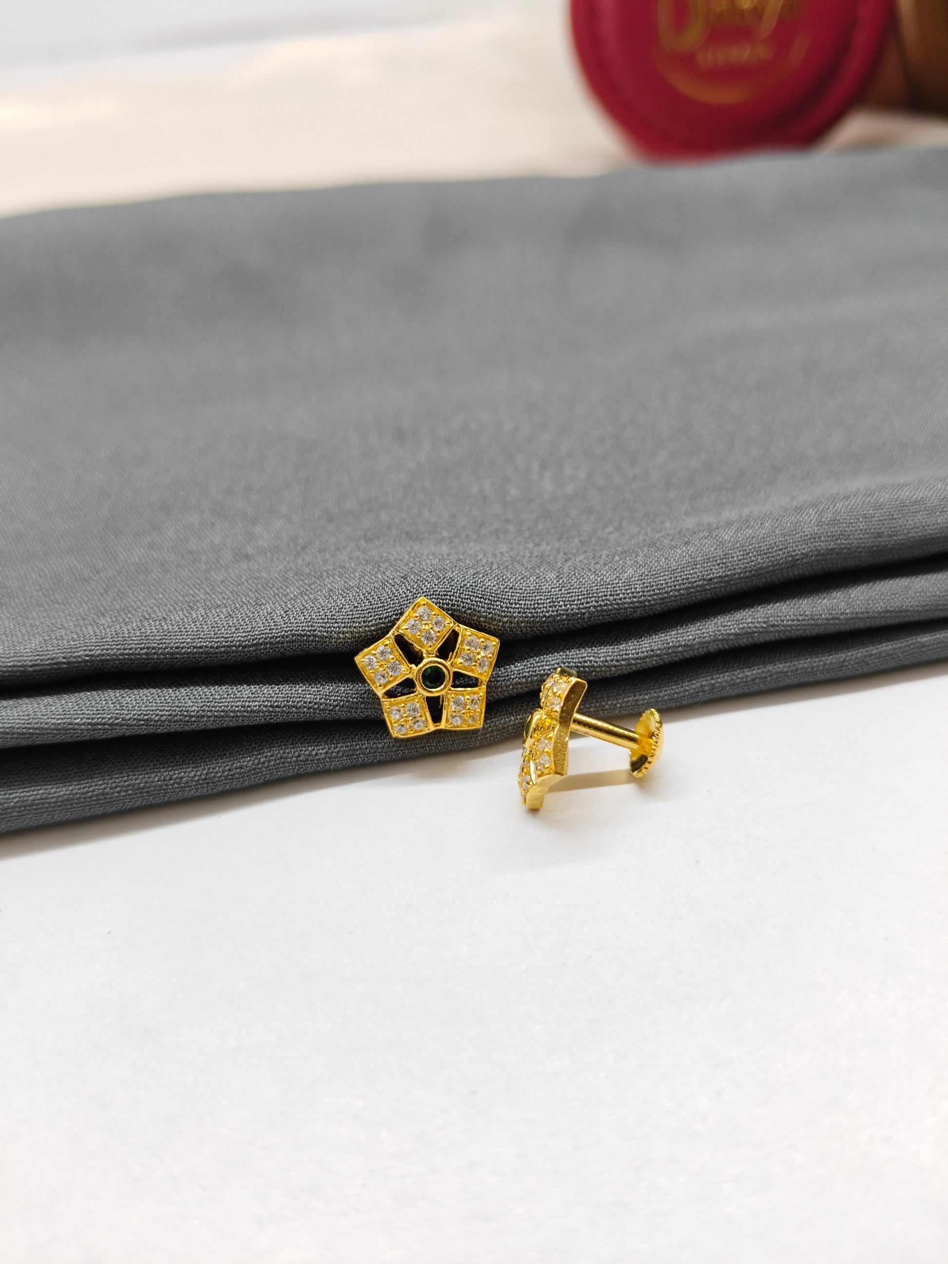 925 Silver Gold Colour Emerald With White Stone Earrings