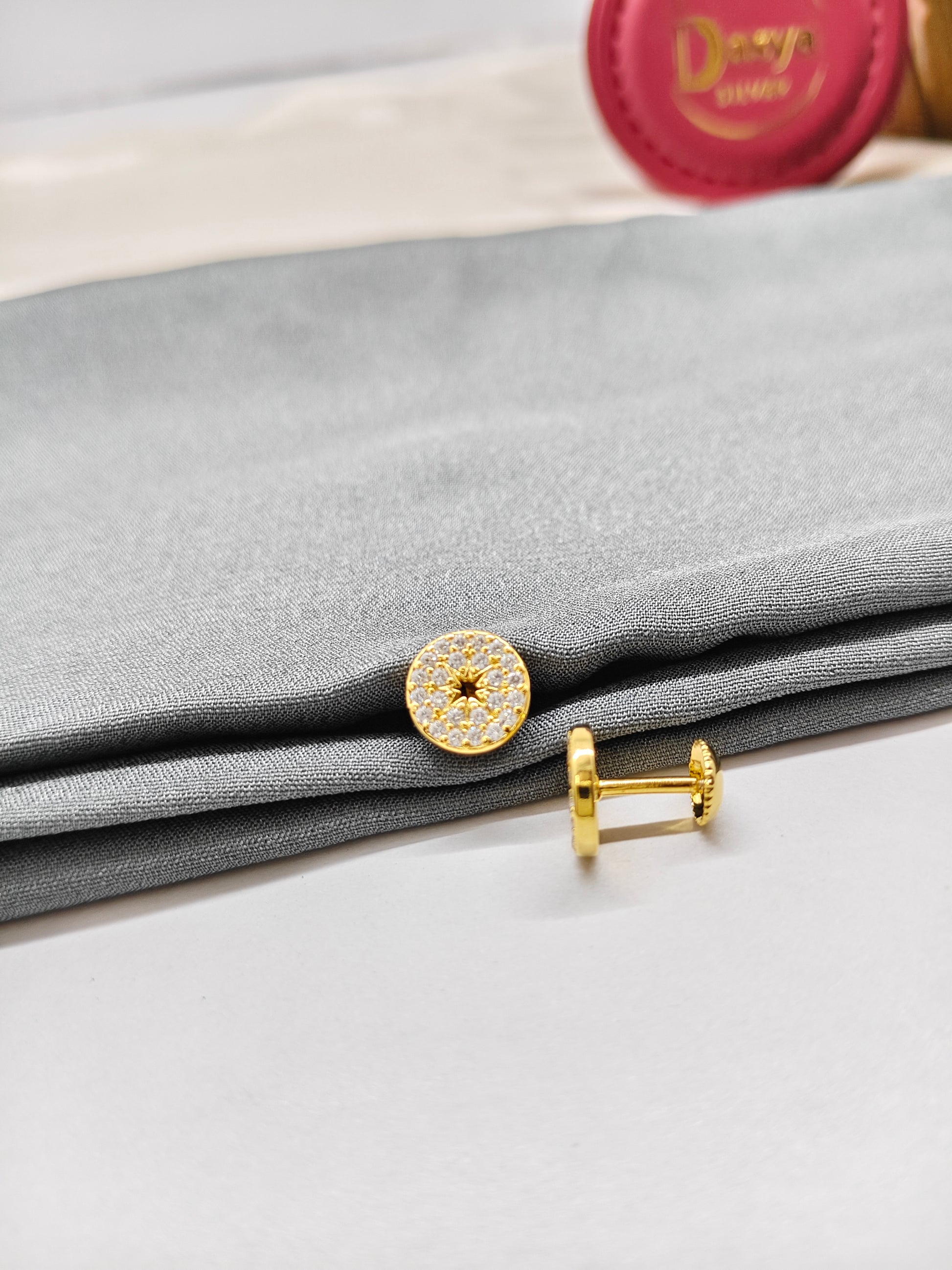 925 Silver Gold Colour Full White stone Round Design Earrings