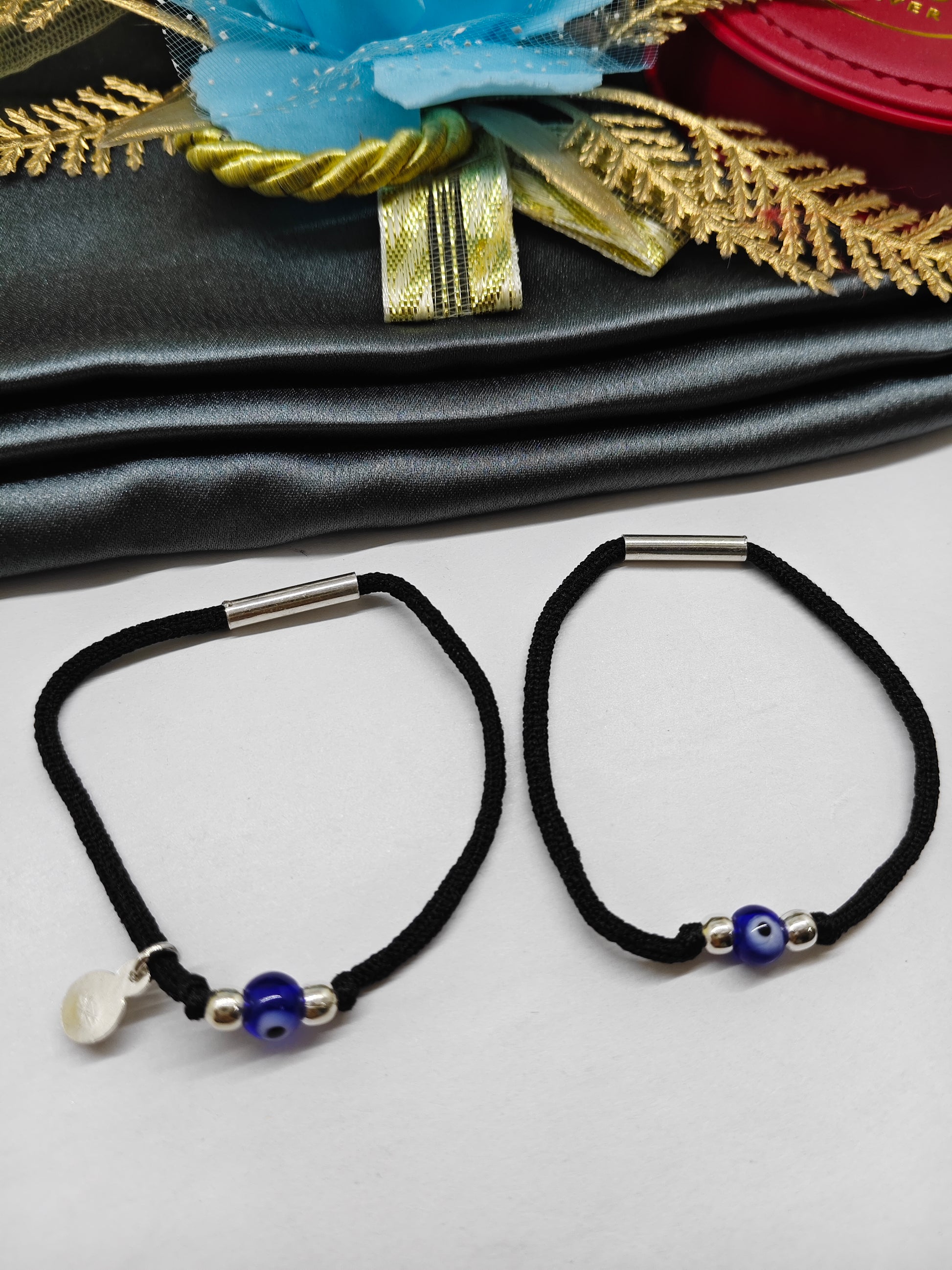 925 Silver Kids Nazariya Silver Beads With Evil Eye Design Stretchable Thread Anklet Pair