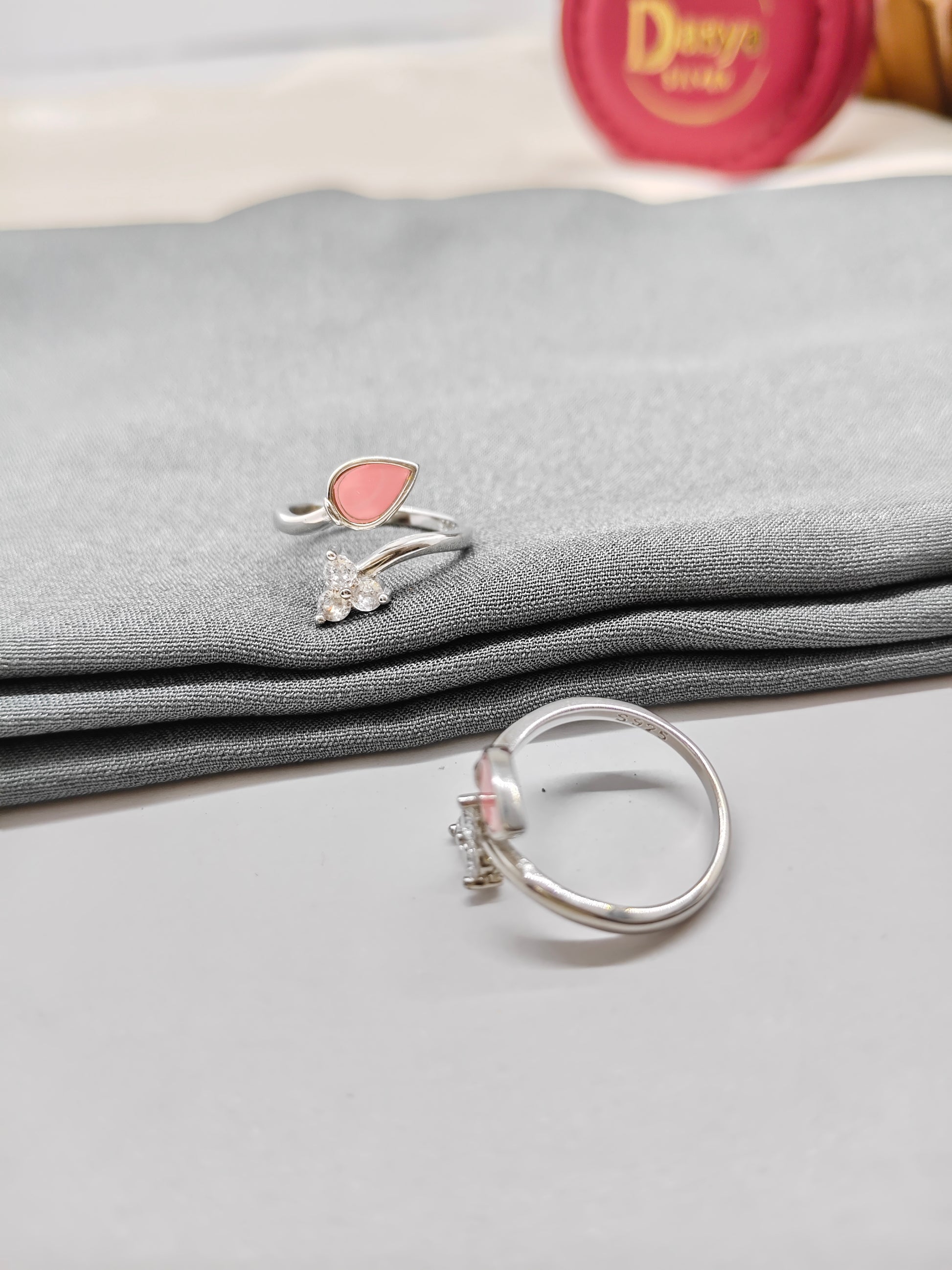 925 Silver Pink Enamel With White Stone Tilak Design Toe Rings