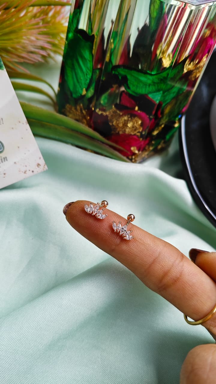 925 Silver Rose Gold 5 Stone Design With White Stone Bugadi Earrings