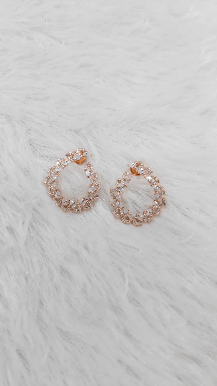 925 Silver Rose Gold Big Size Full Heart Design With White Stone Earrings