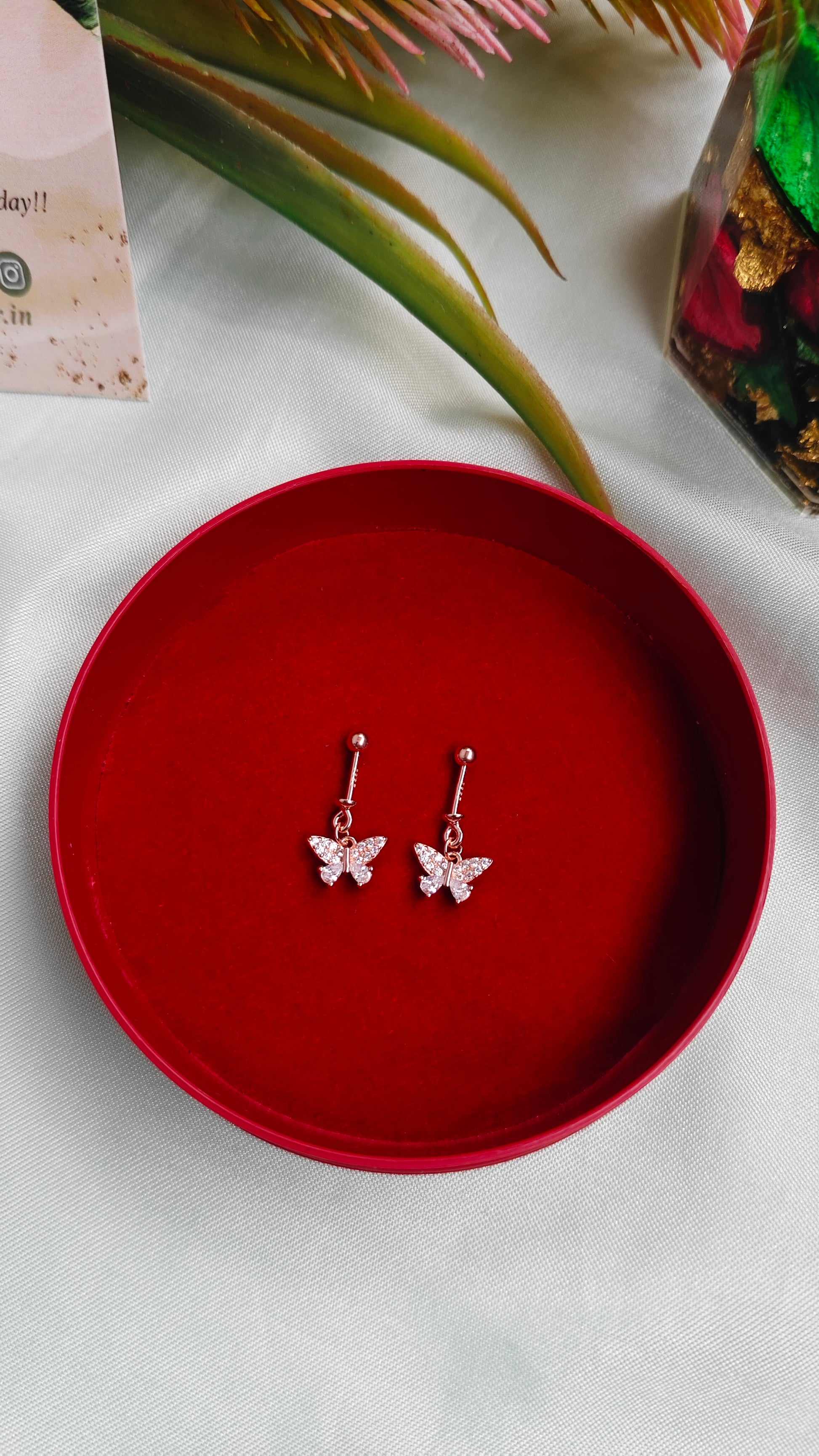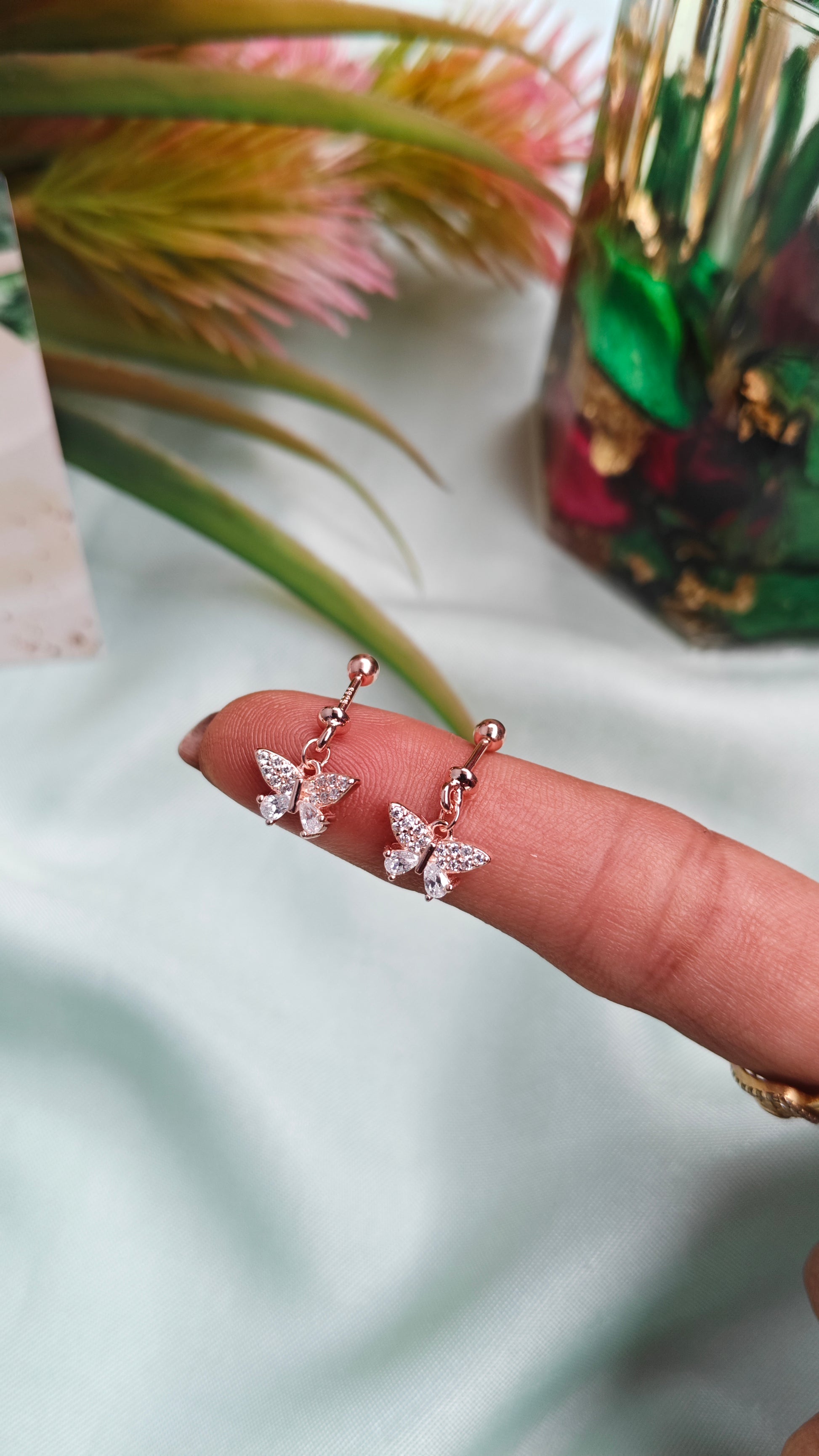 925 Silver Rose Gold Butterfly Hanging Design With White Stone Bugadi Earrings