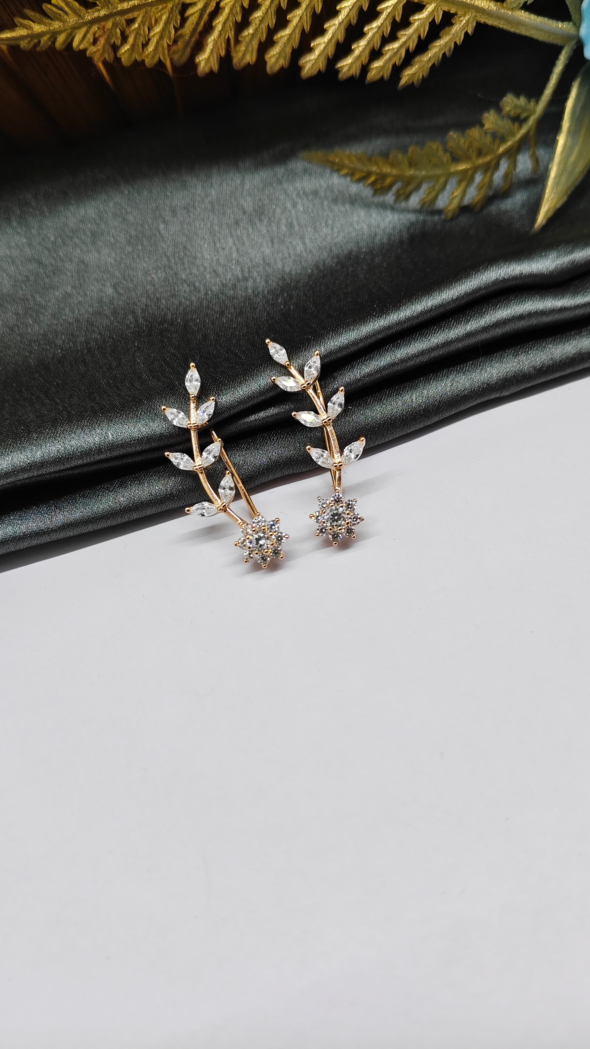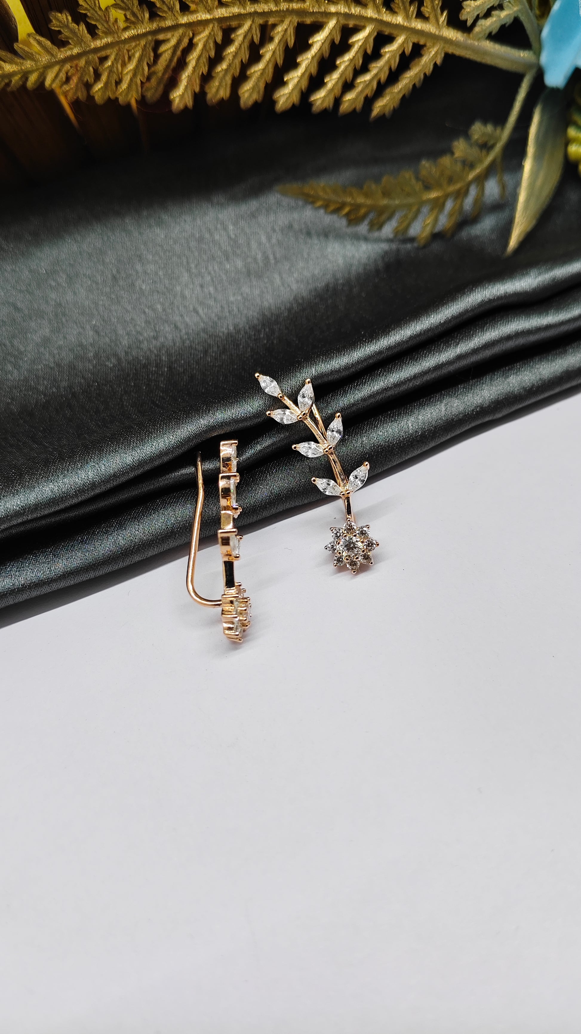 925 Silver Rose Gold Colour 9 Stone with Leaf Design Ear Cuff/Bluetooth