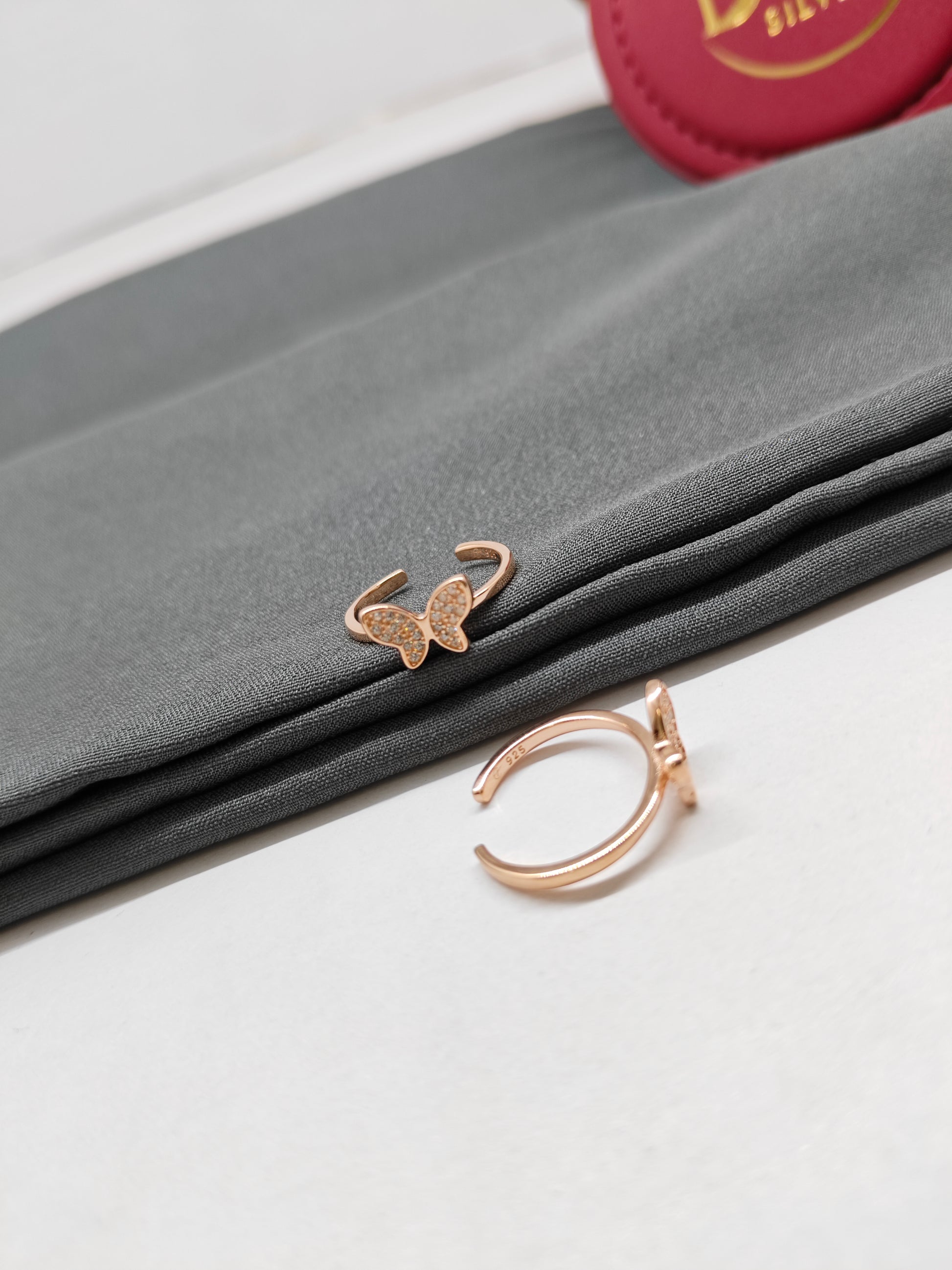925 Silver Rose Gold Colour Butterfly Design Toe Rings