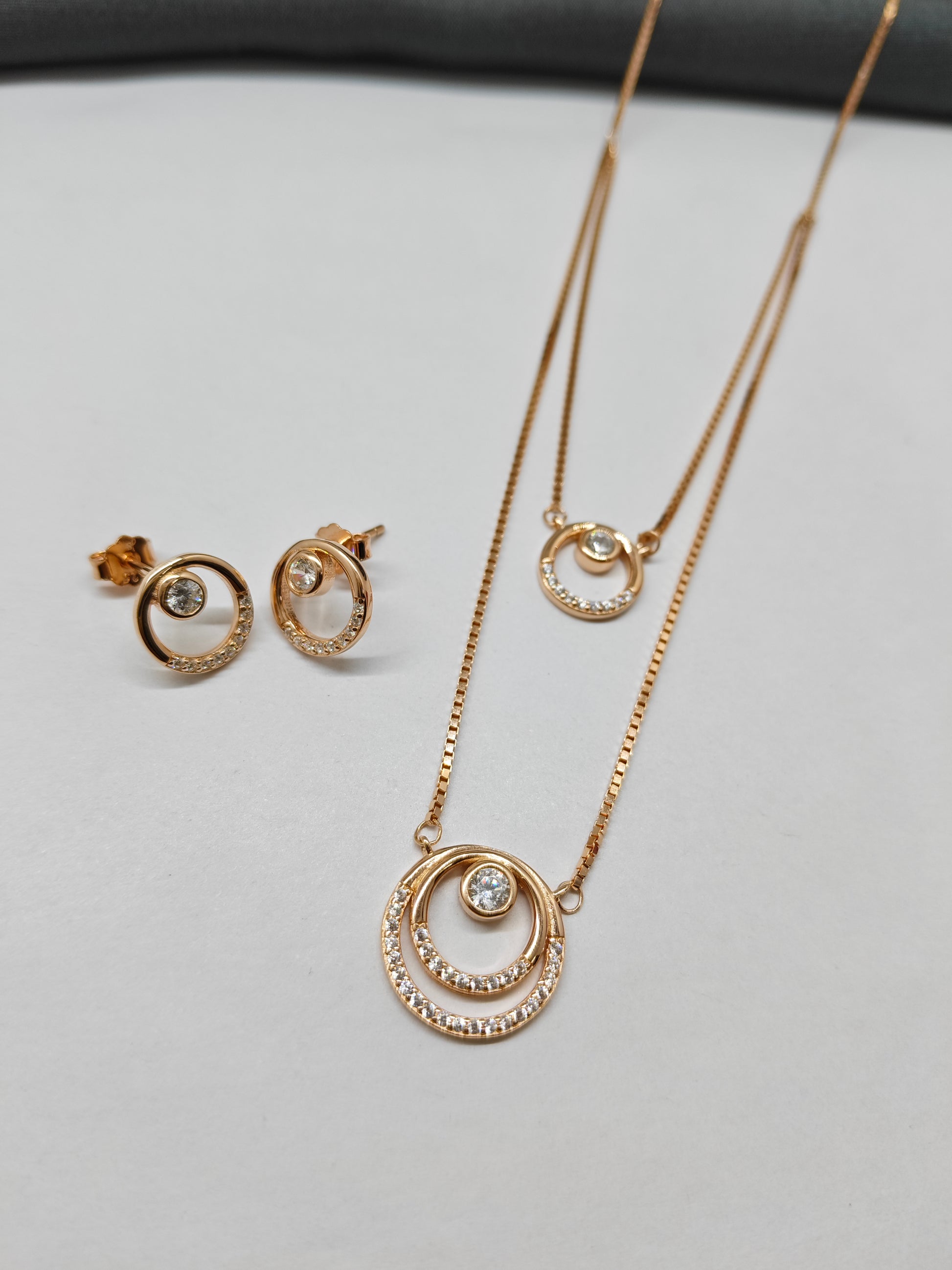 925 Silver Rose Gold Colour Double Layer Round Design Necklace Set