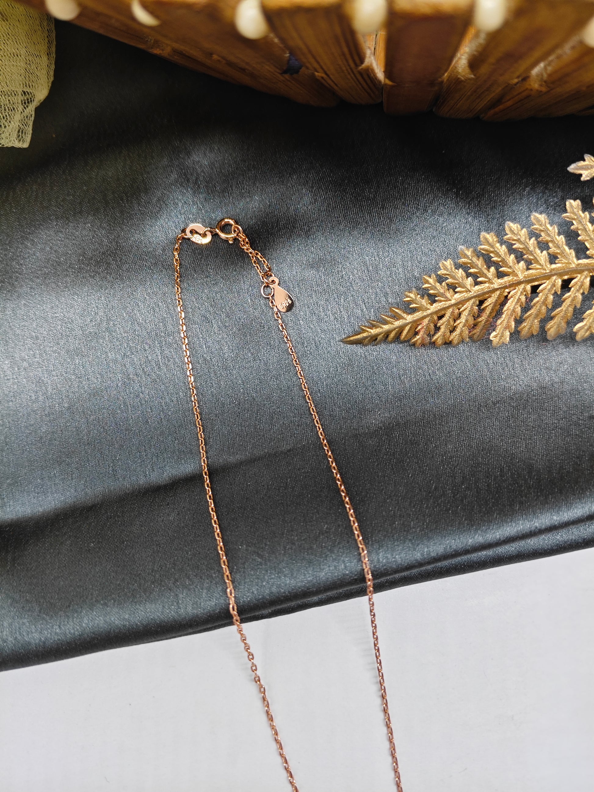925 Silver Rose Gold Colour Enamel Design With White Stone Chain Pendant