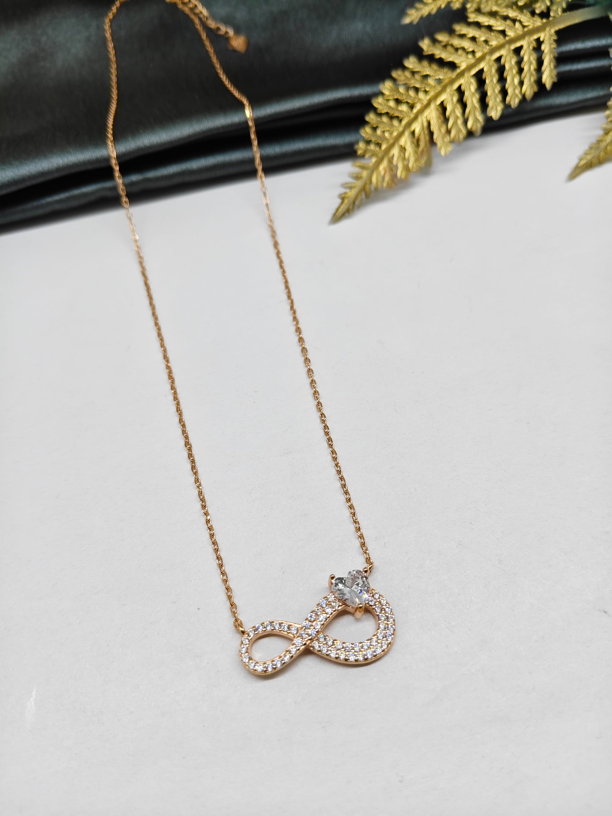 925 Silver Rose Gold Colour Infinity Design White Stone Chain Pendant