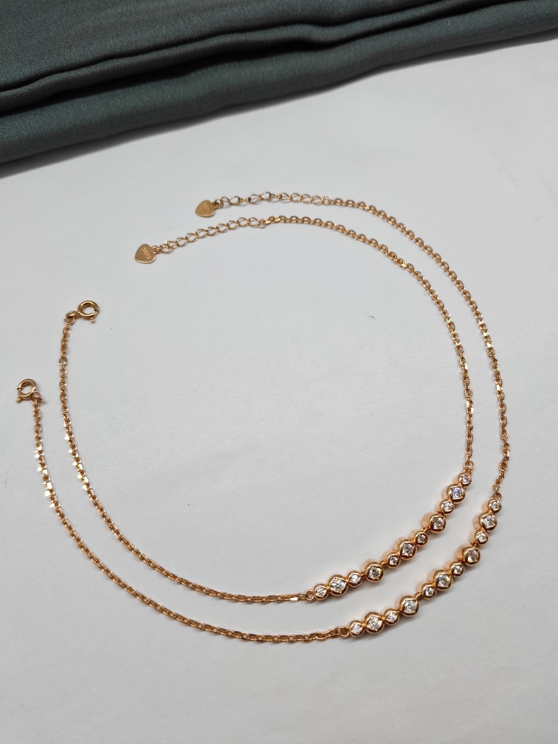 925 Silver Rose Gold Colour Multiple White Stone Design Anklets