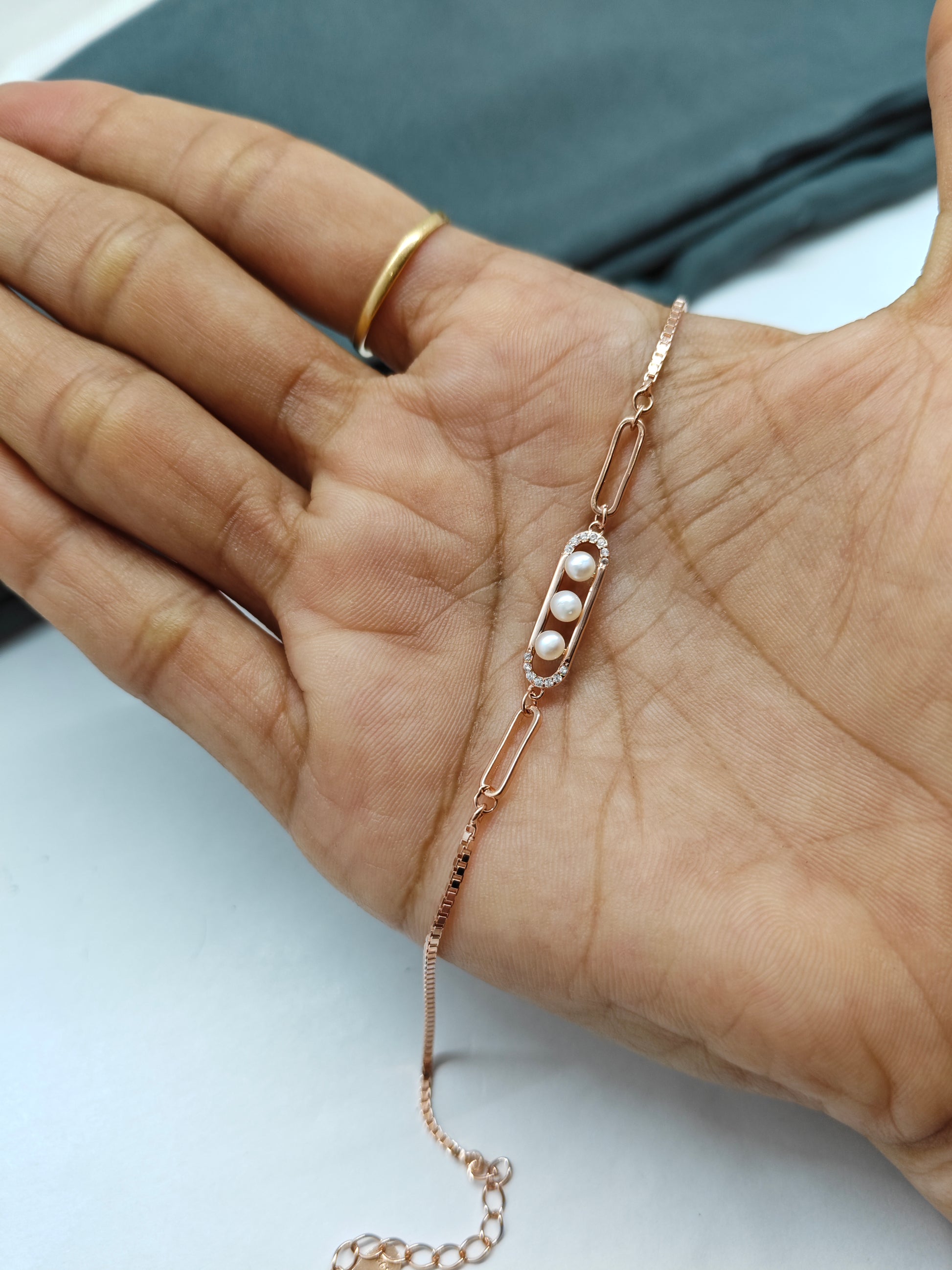 925 Silver Rose Gold Colour Peral Design Bracelet