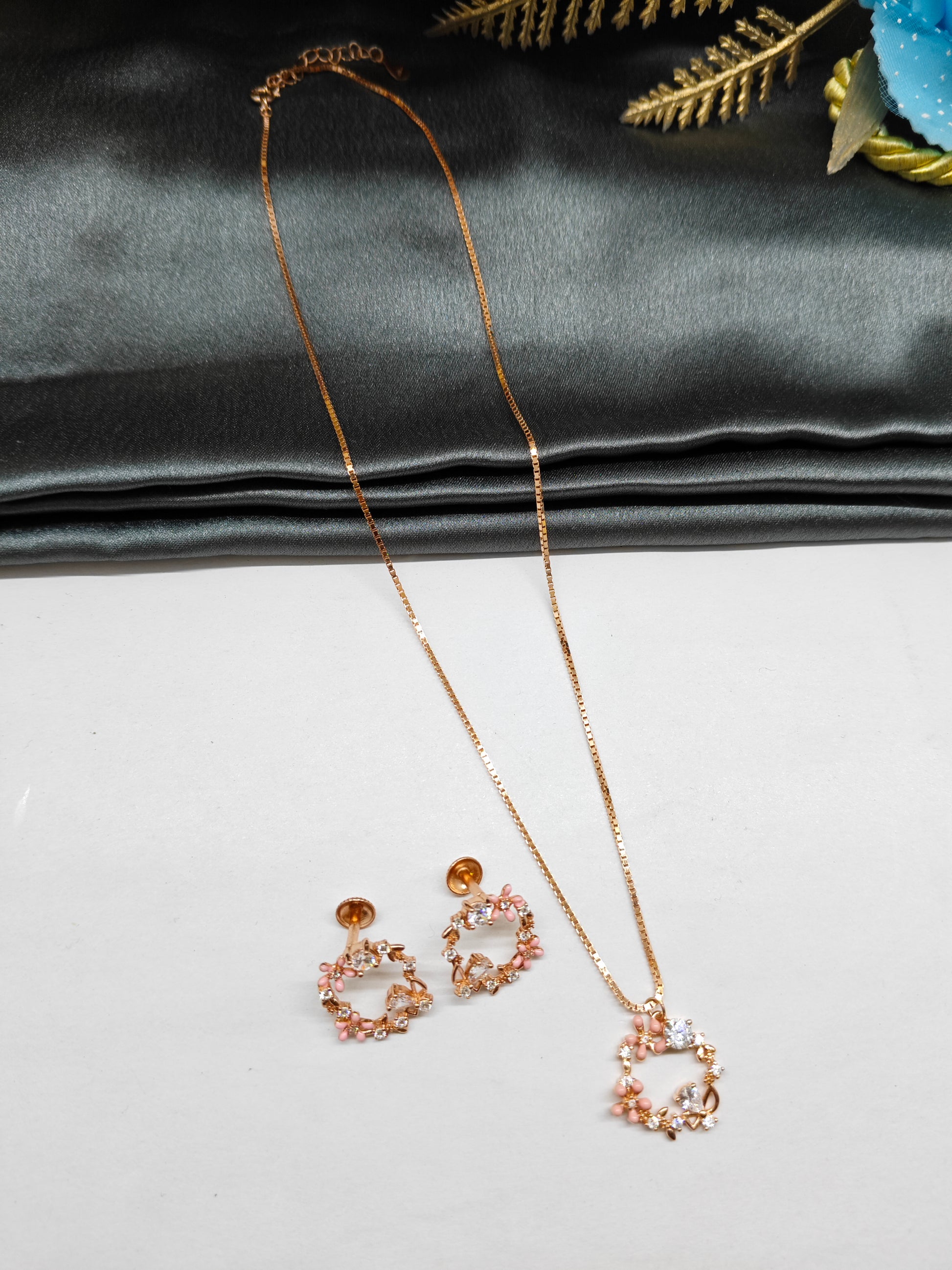 925 Silver Rose Gold Colour Pink Enamel Design White Stone Set With Earring