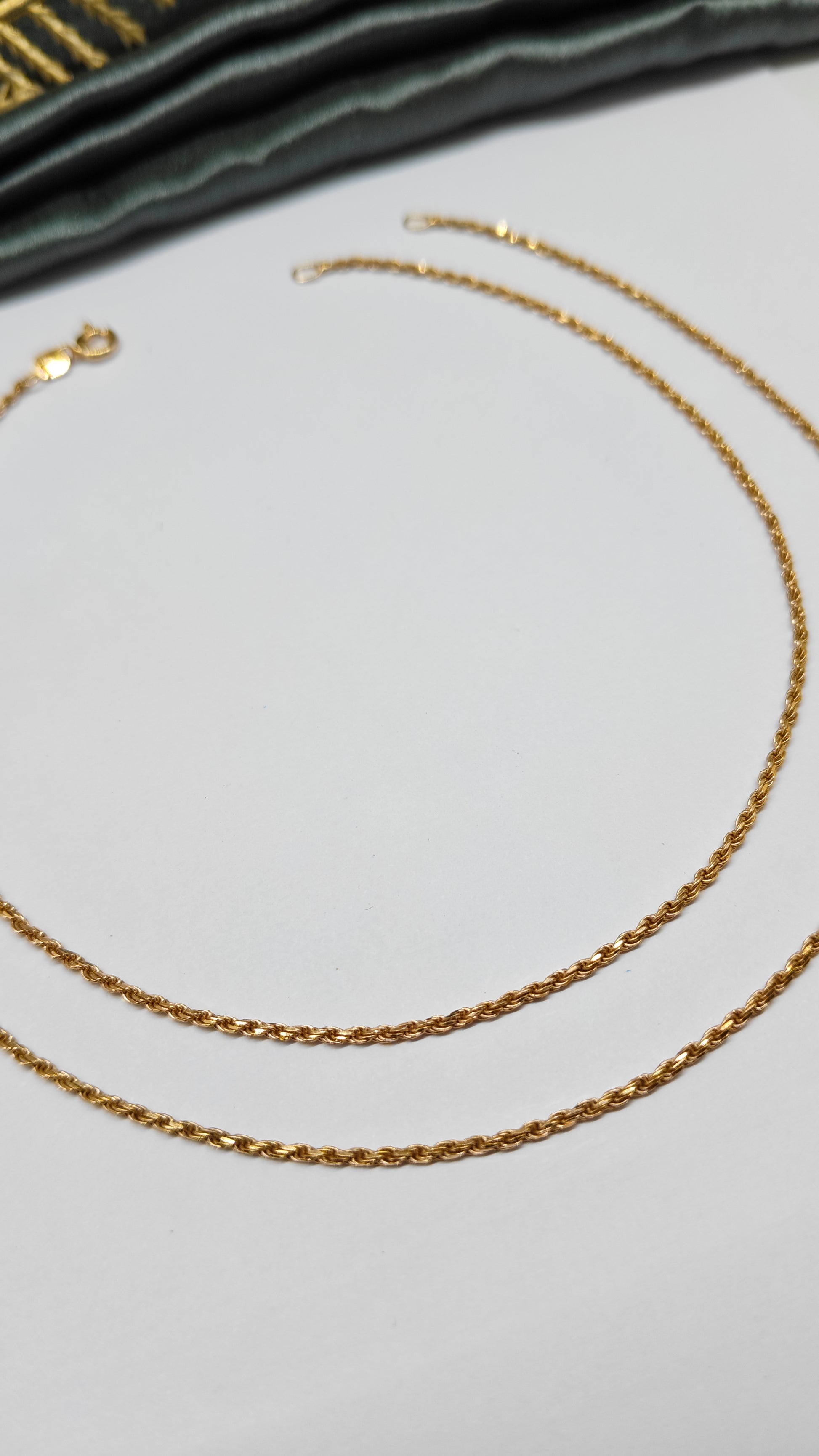 925 Silver Rose Gold Colour Italian Rope Design Anklet Pair
