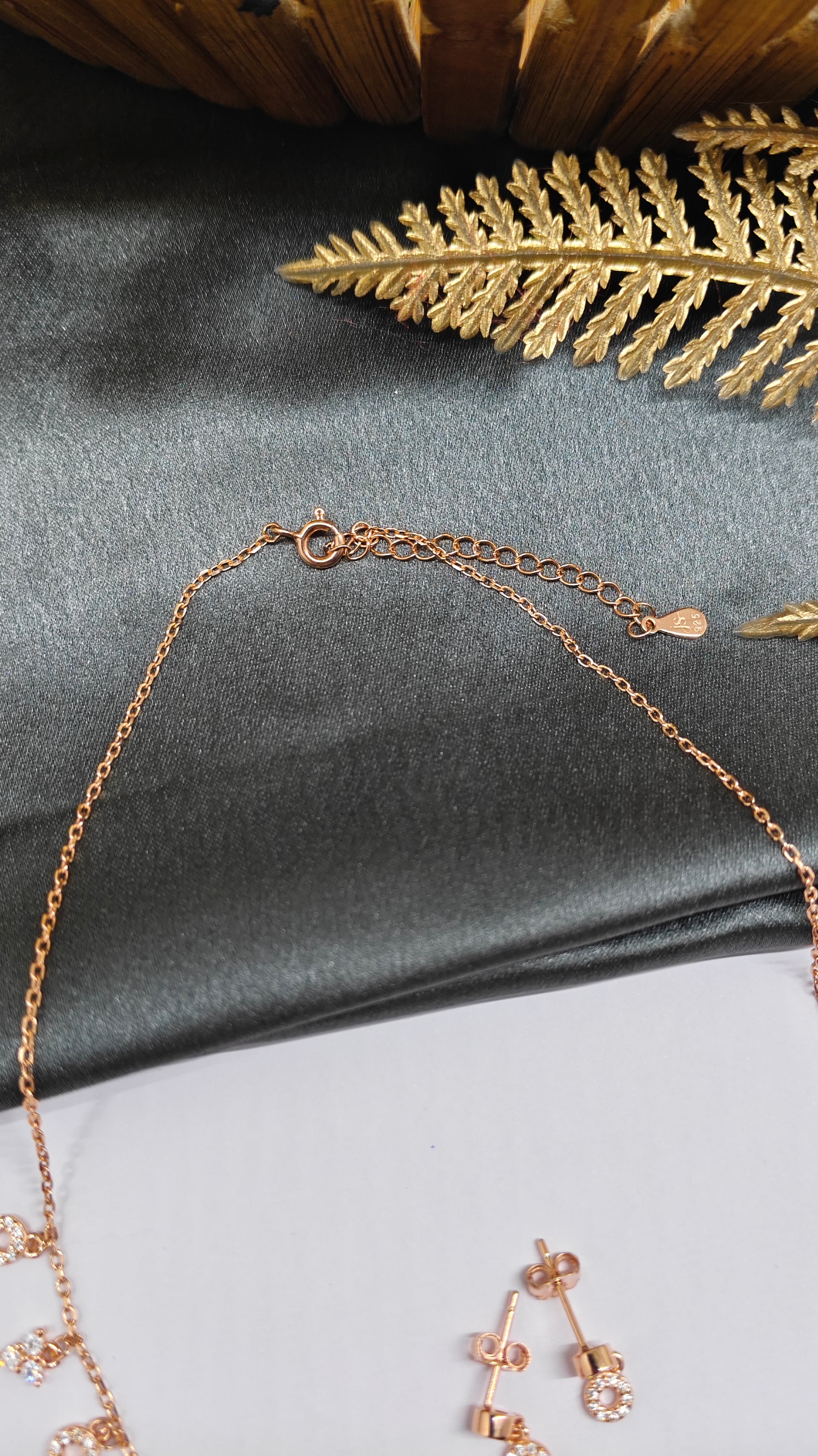 925 Silver Rose Gold Colour Round and Triangle Hanging Design Stone Necklace Set