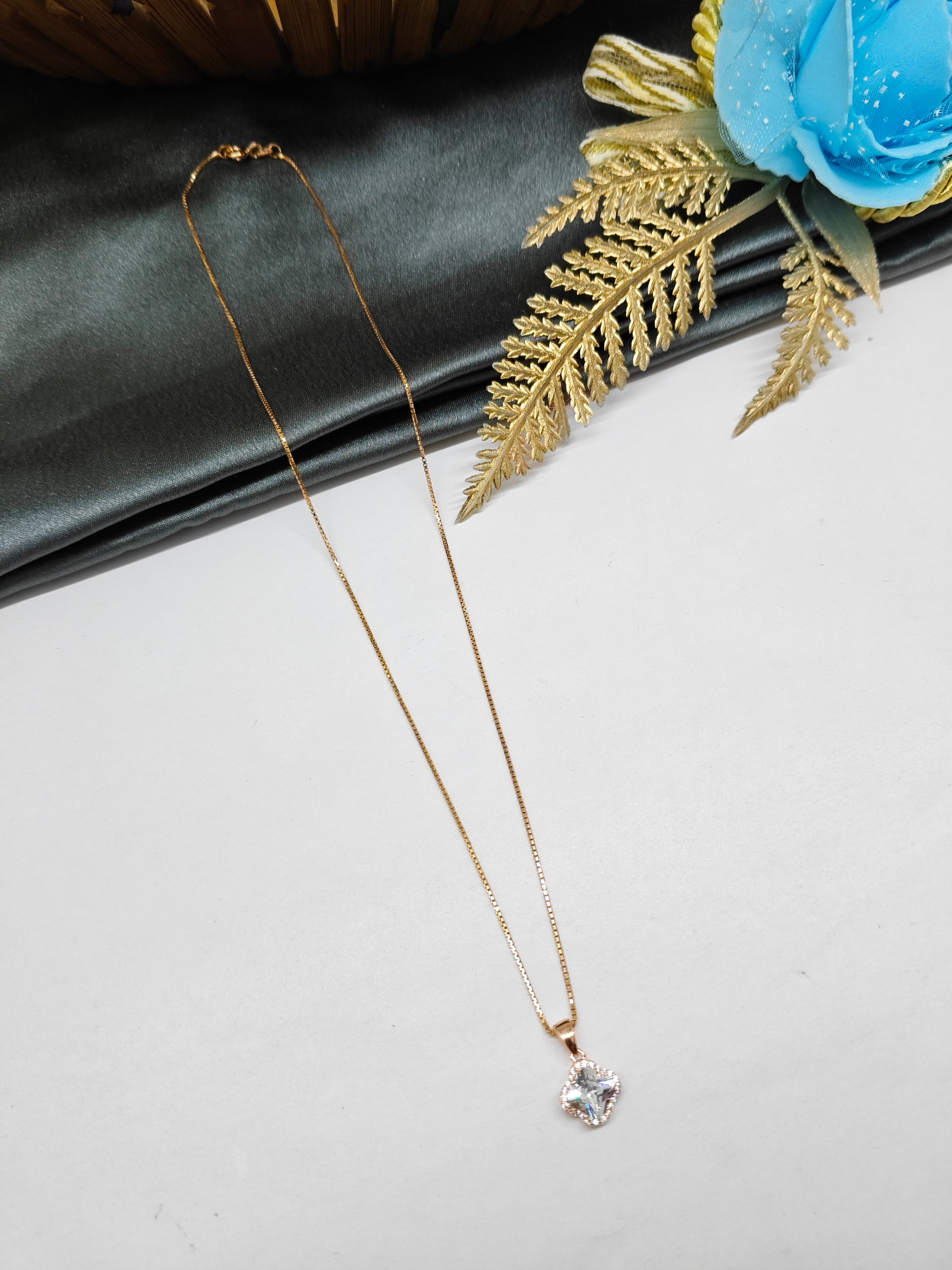 925 Silver Rose Gold Colour Solitaire Design White Stone Chain With Pendant