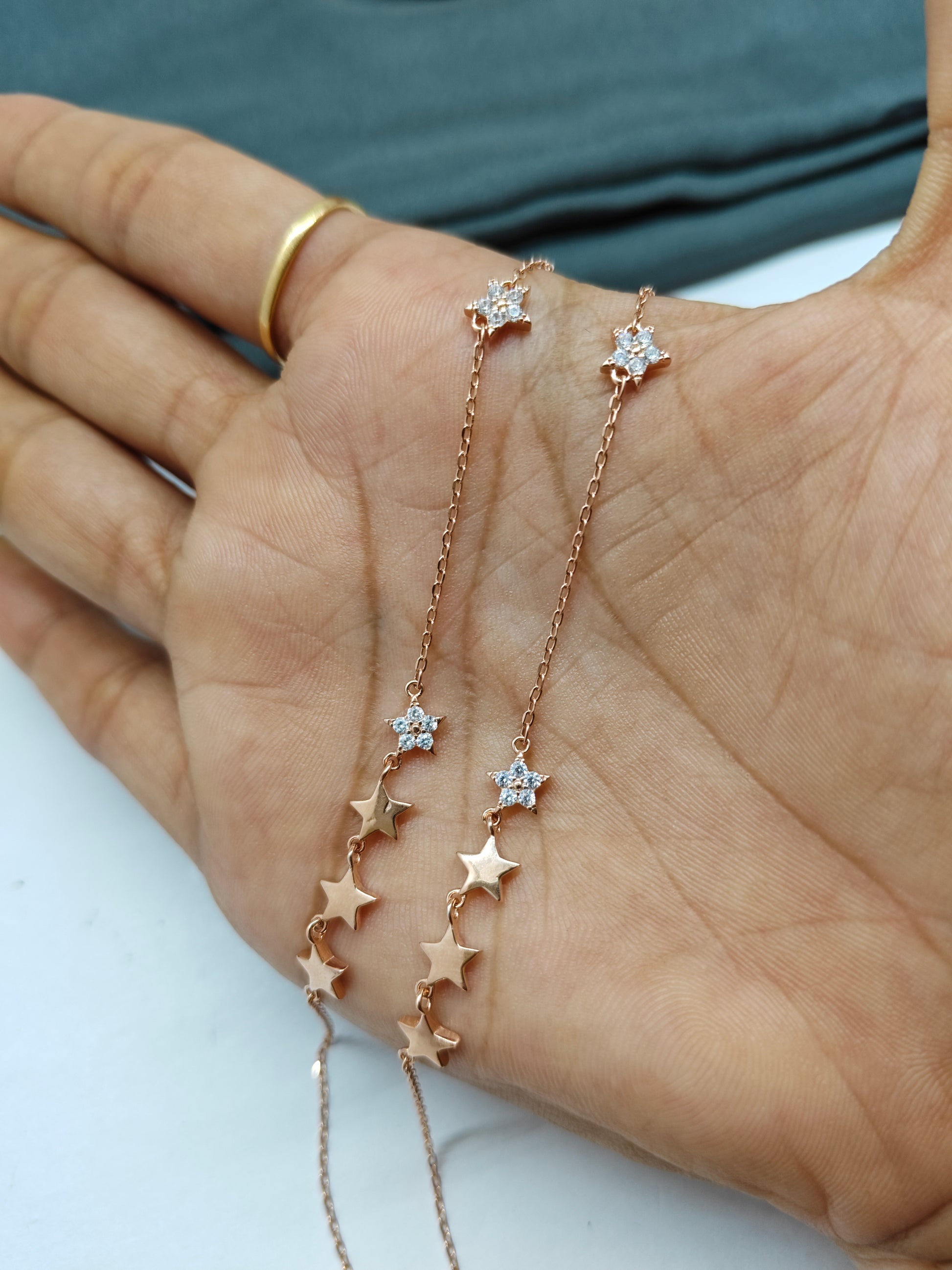 925 Silver Rose Gold Colour Star Hanging Design Anklets