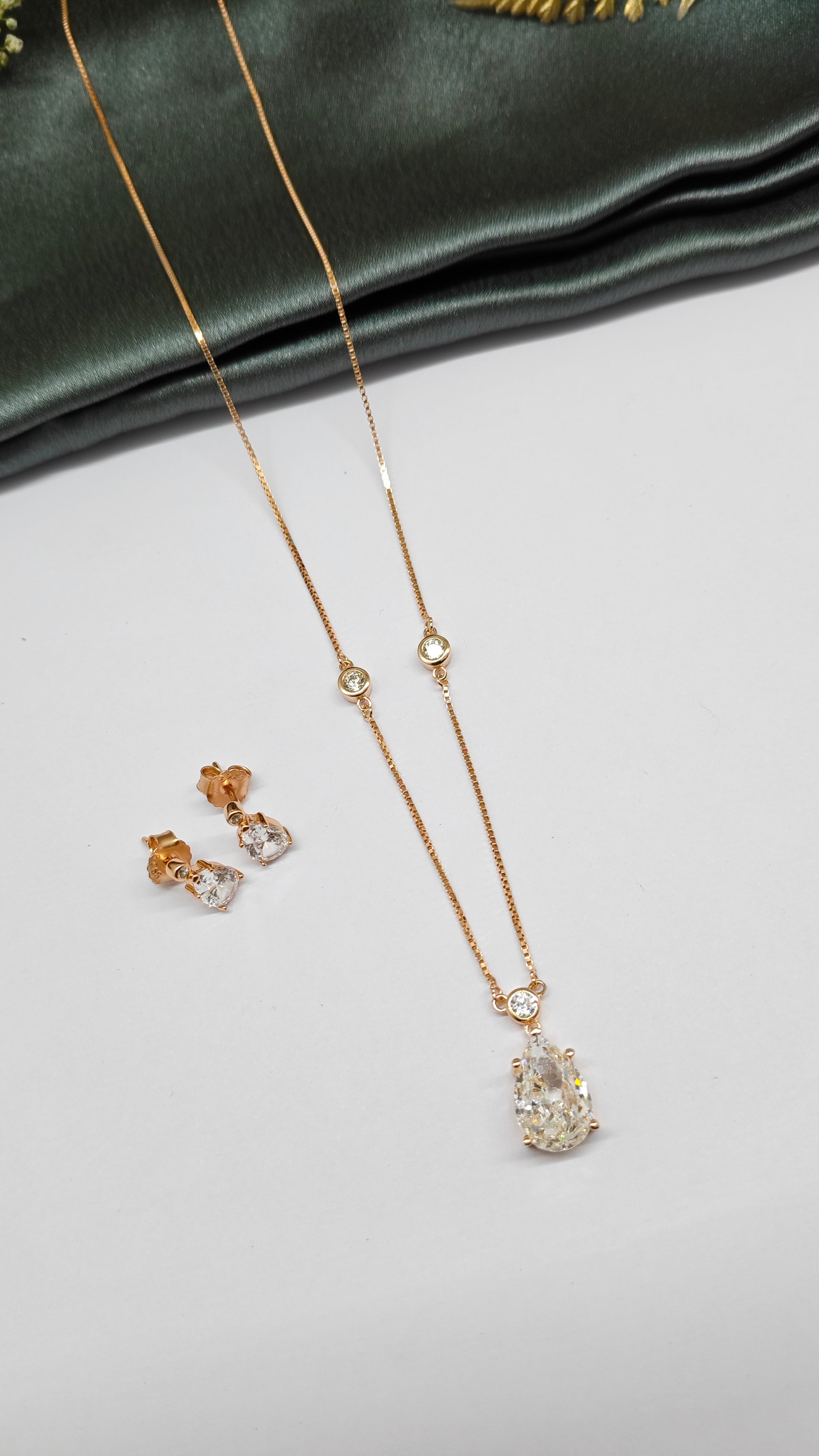 925 Pure Silver Jewellery White Stone Solitaire Design Set/Necklace Set With Earrings