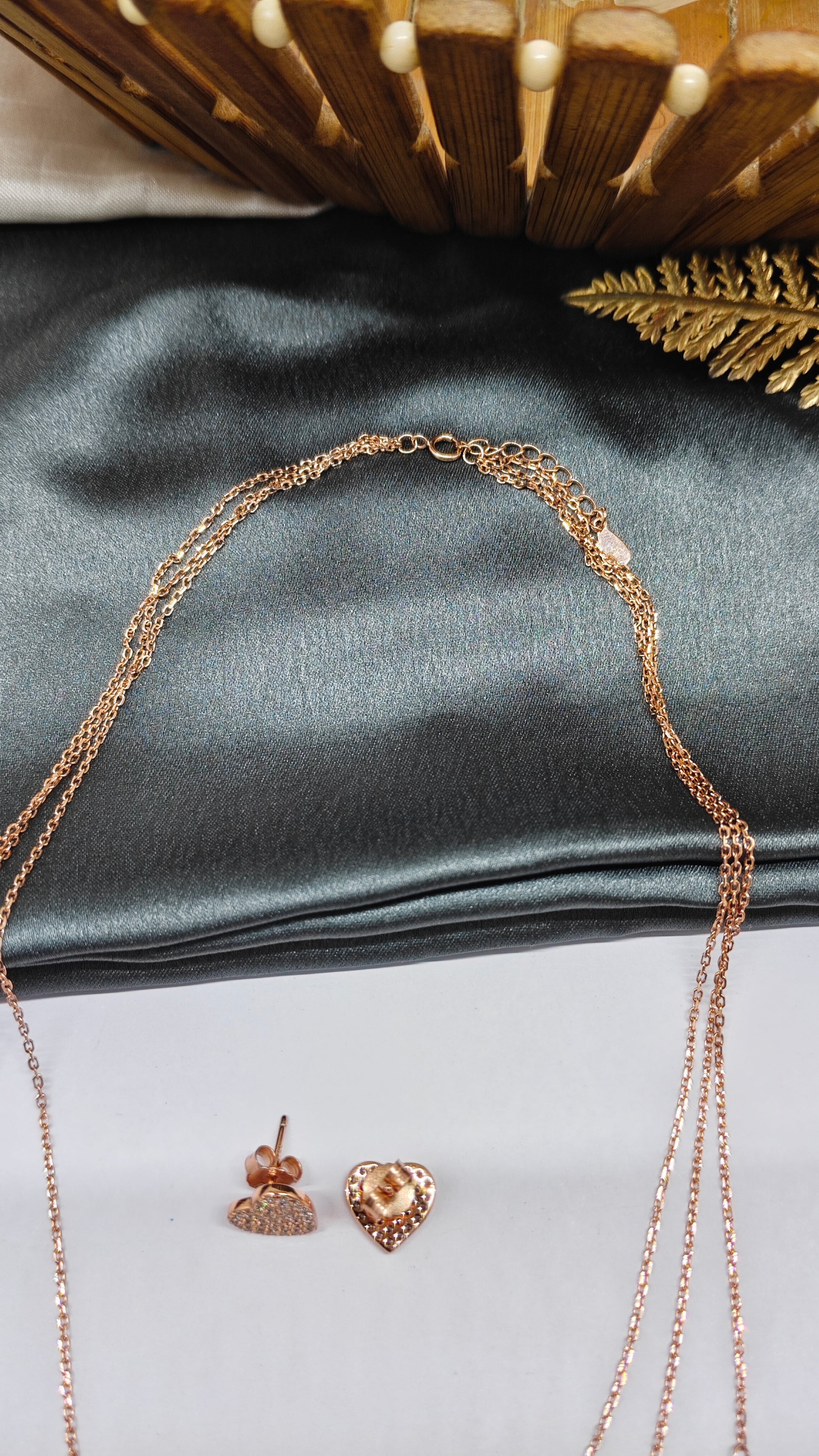 925 Silver Rose Gold Colour White Stone 3 Layer Heart Hanging Design Necklace Set