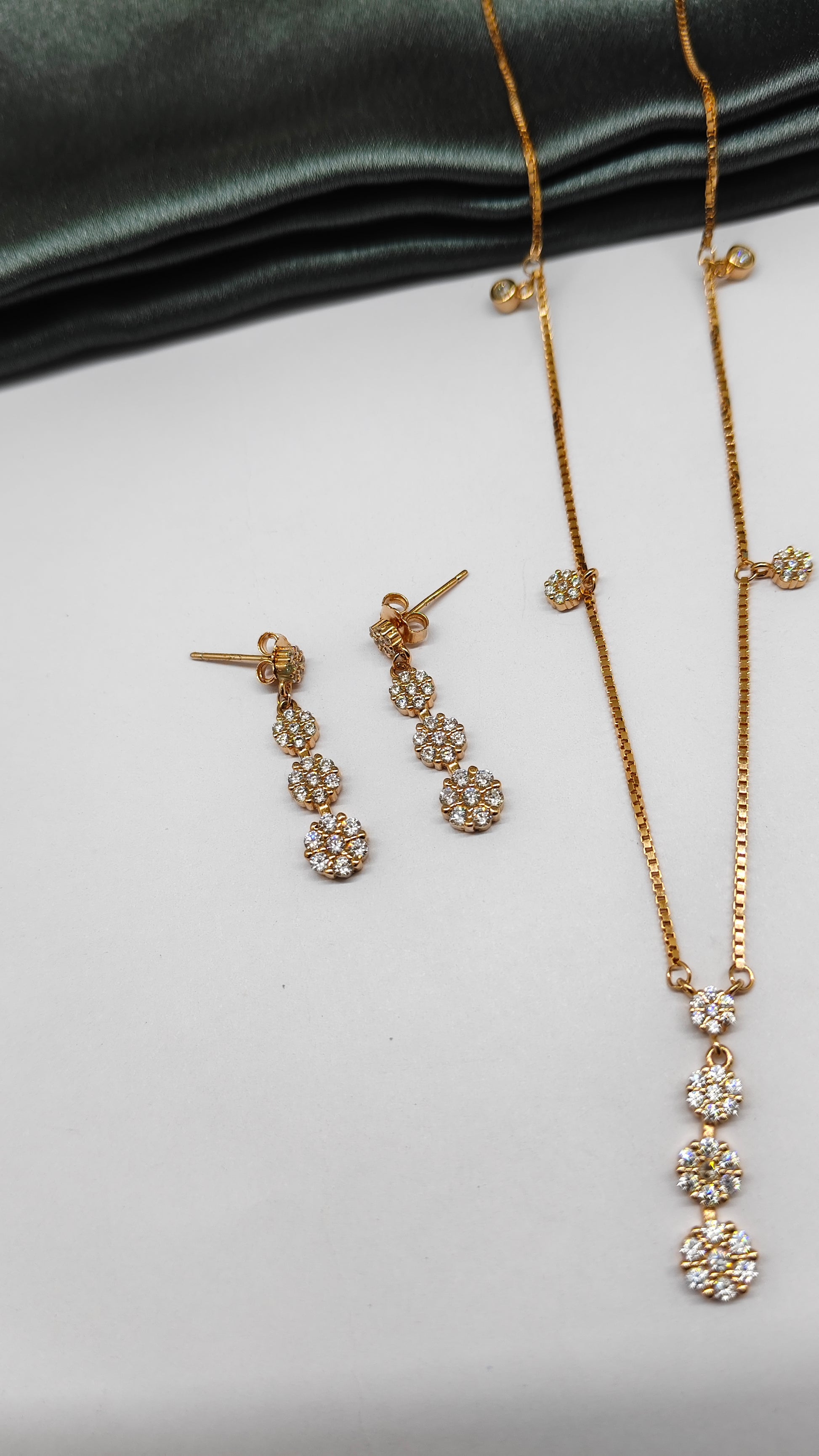 925 Silver Rose Gold Colour White Stone Design Necklace Set