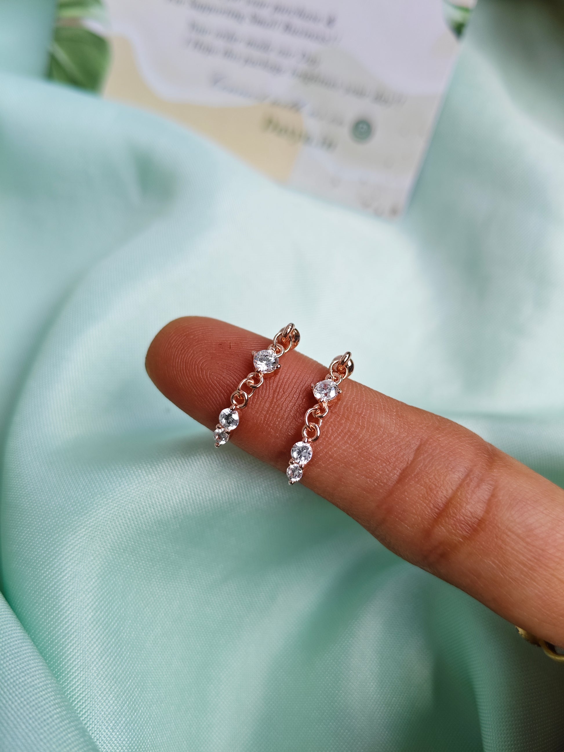 925 Silver Rose Gold Hanging Design With White Stone Bugadi Earrings