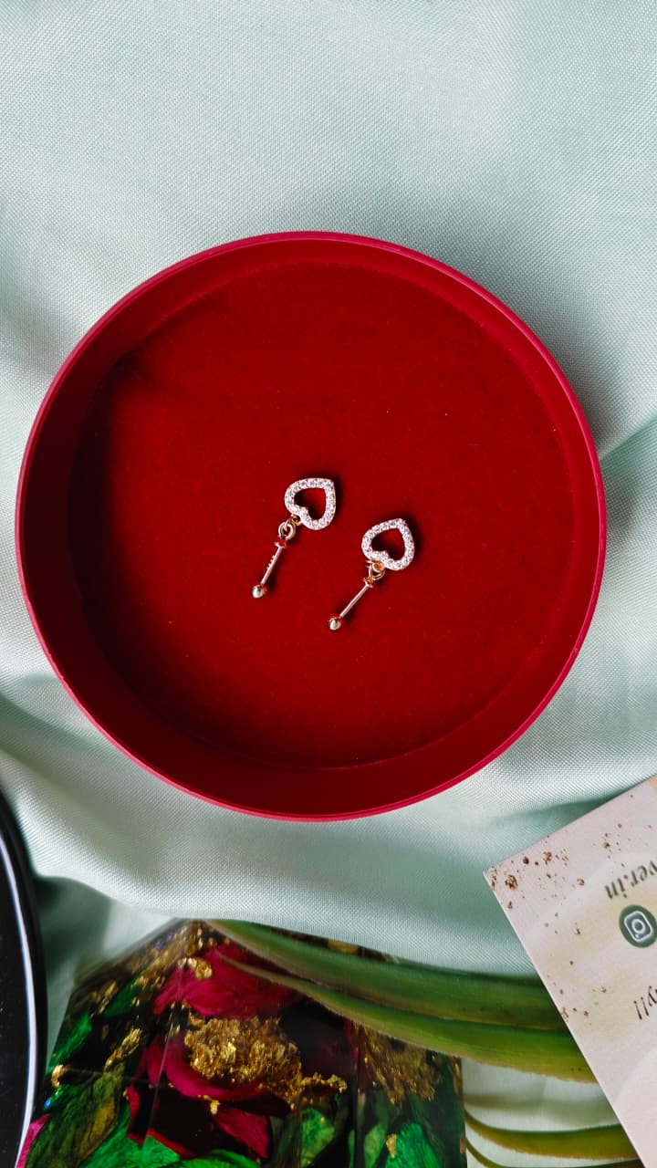 925 Silver Rose Gold Heart Hanging Design With White Stone Bugadi Earrings