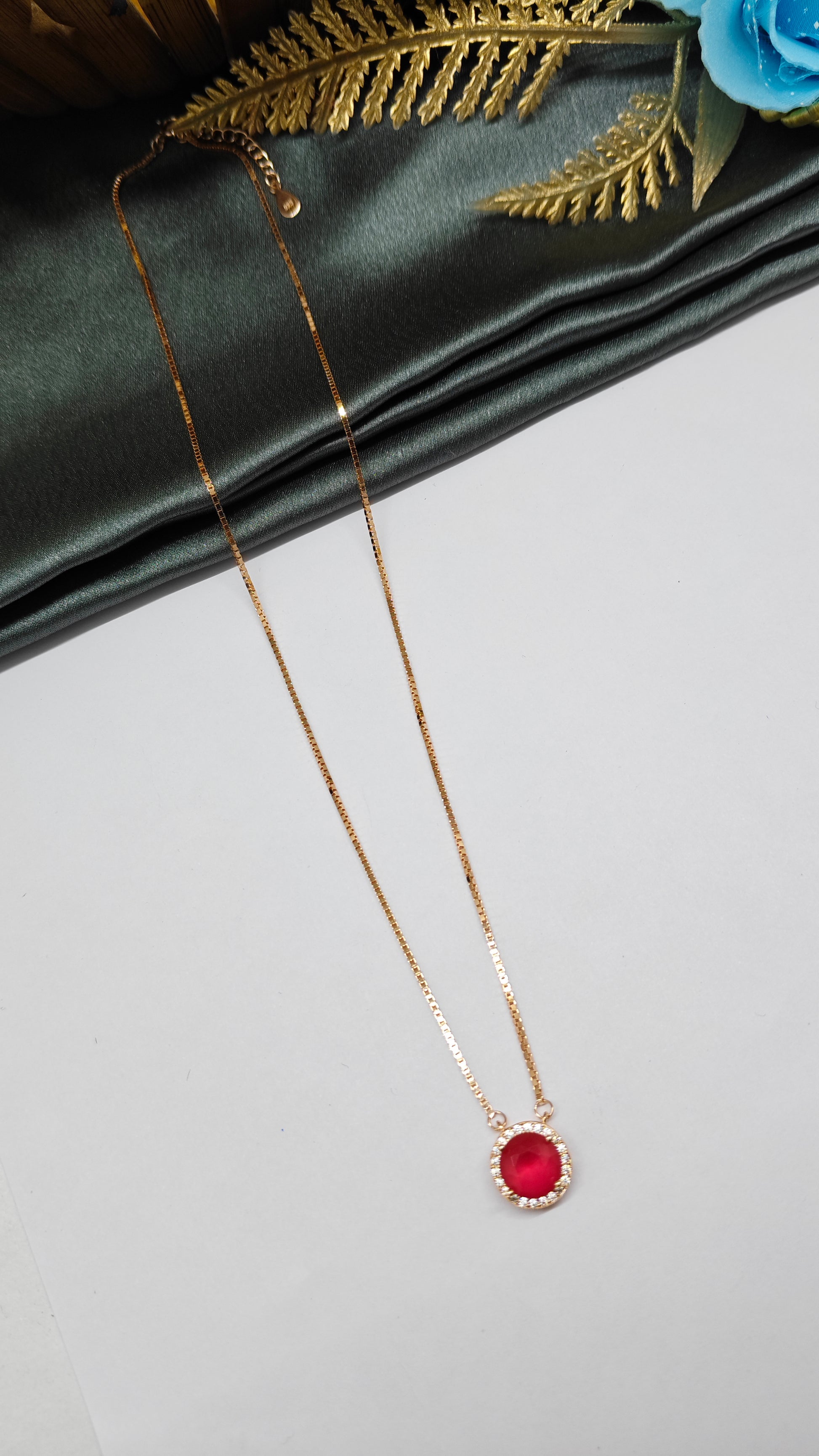925 Pure Silver Jewellery Chain With Red Stone Pendant