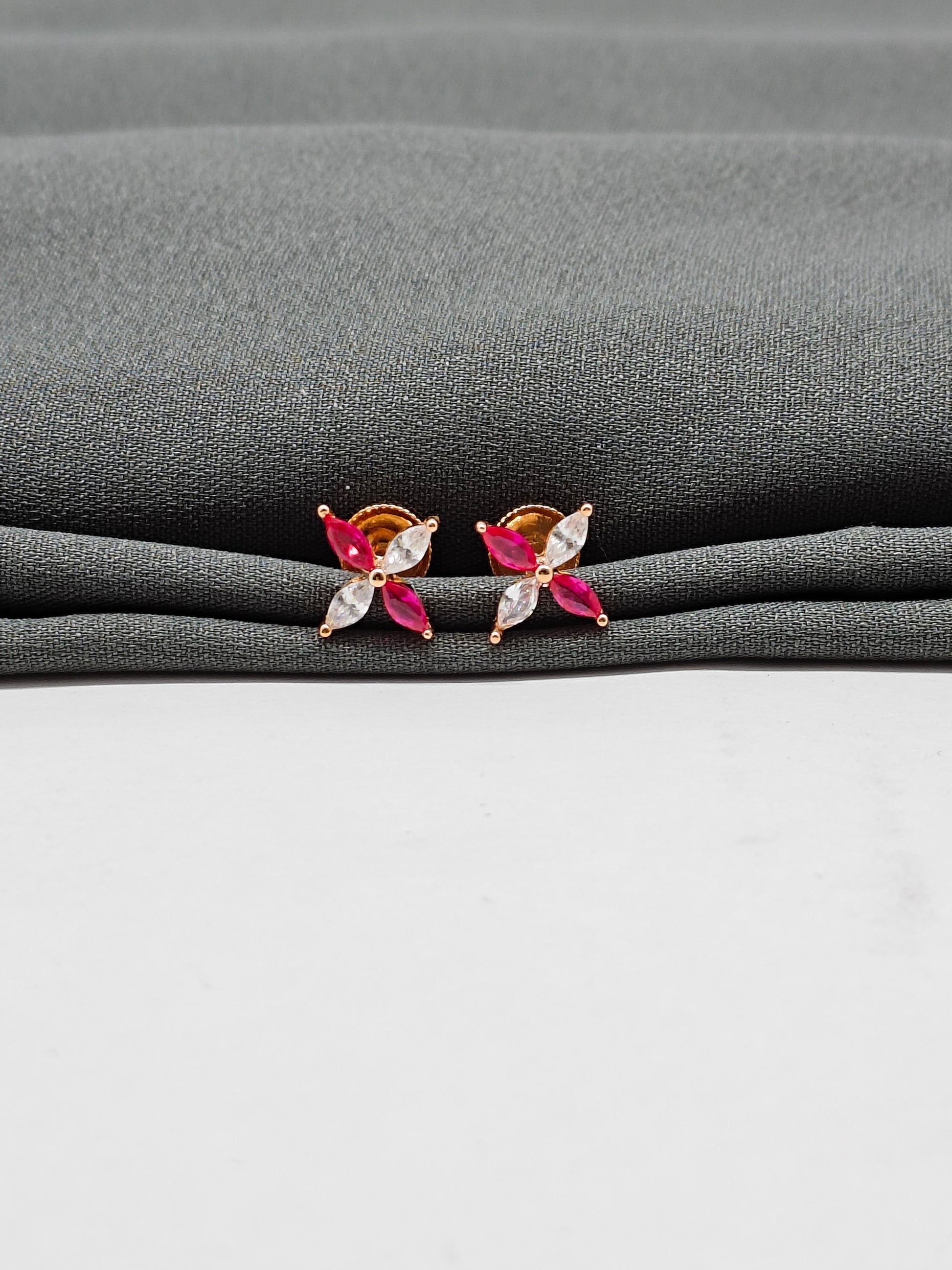 925 Silver Rose Gold Ruby With White Stone Earrings