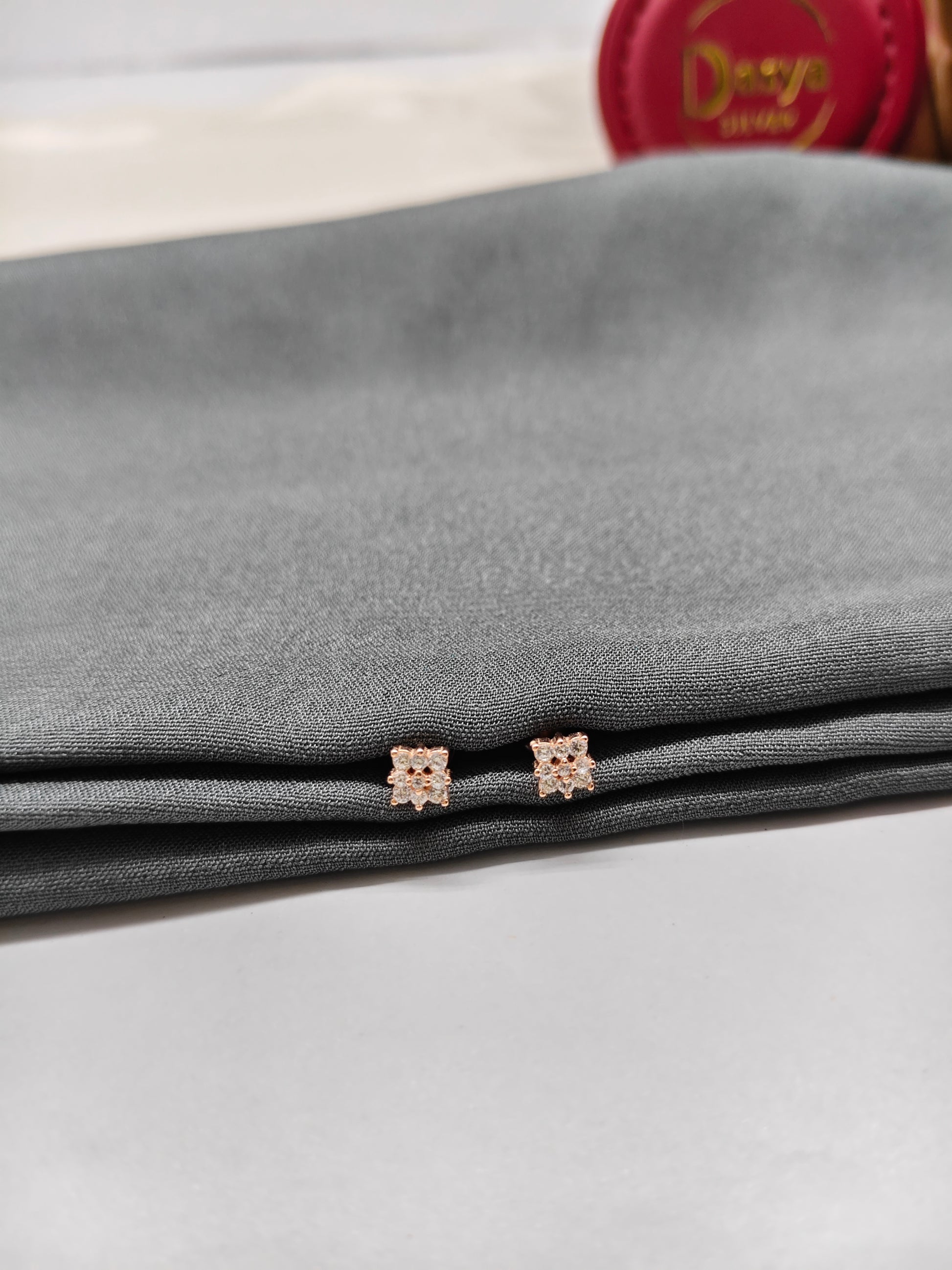 925 Silver Rose Gold Small 9 White Stone Earrings
