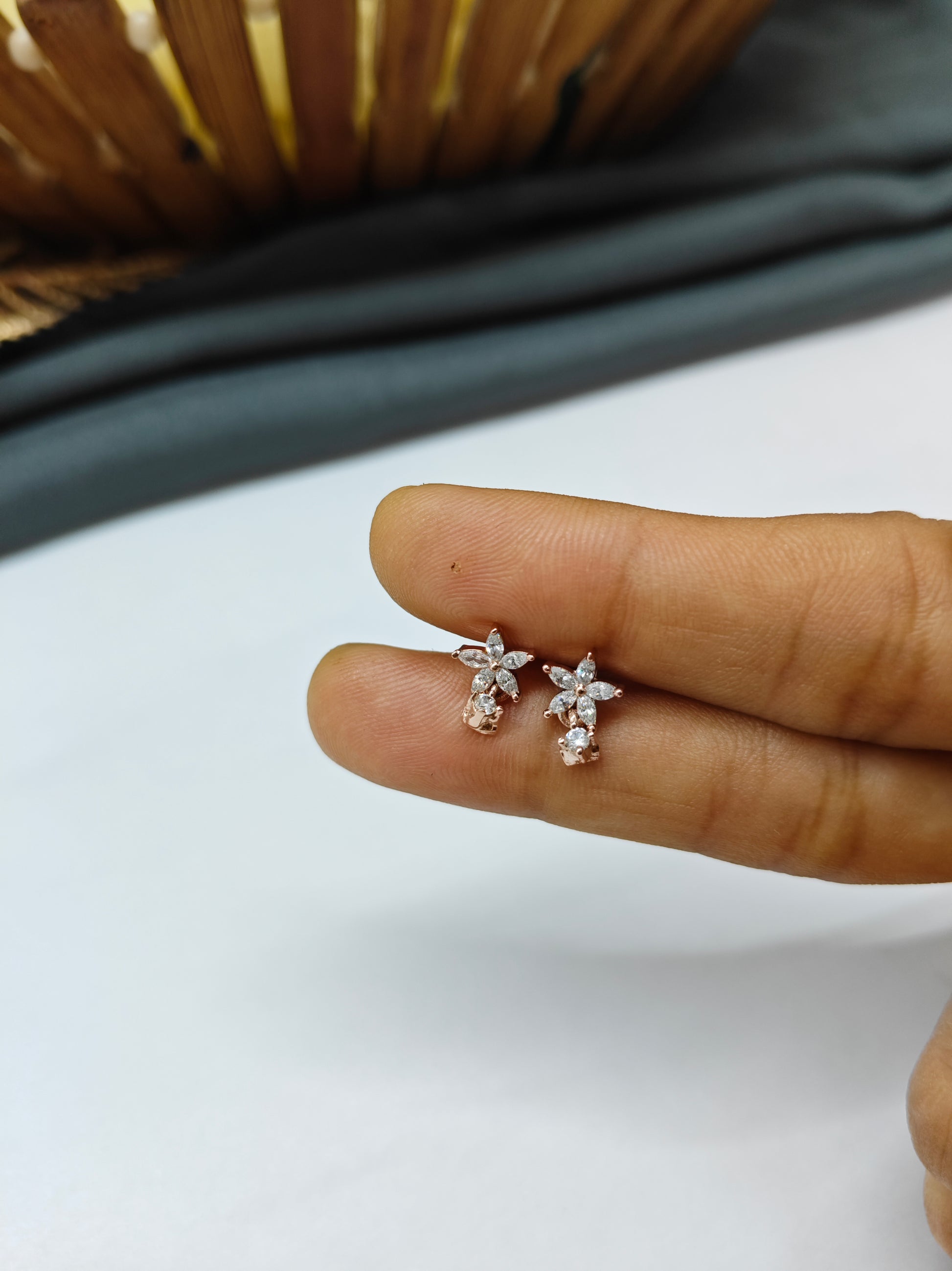 925 Silver Rose Gold Small Star Thongal Design With White Stone Earrings