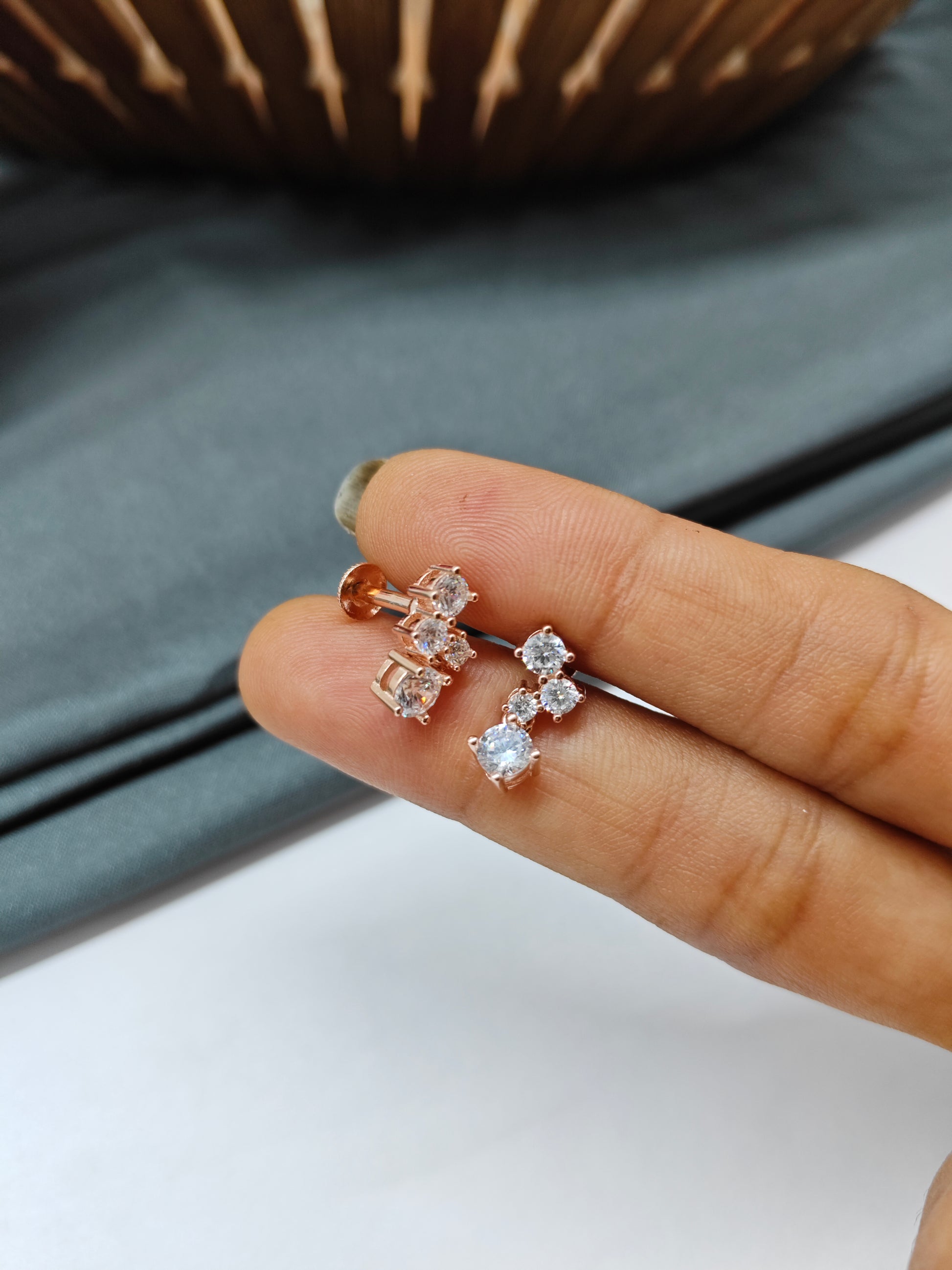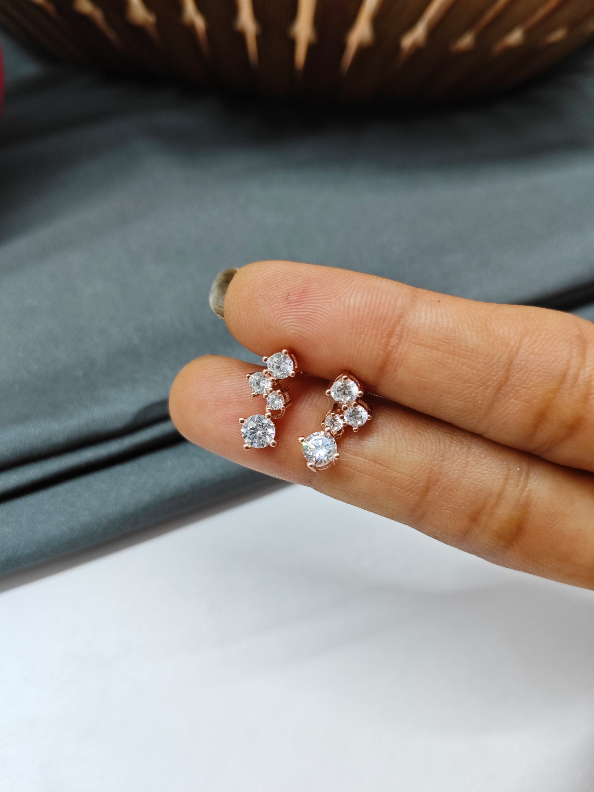 925 Silver Rose Gold White Stone Small Hanging Earrings