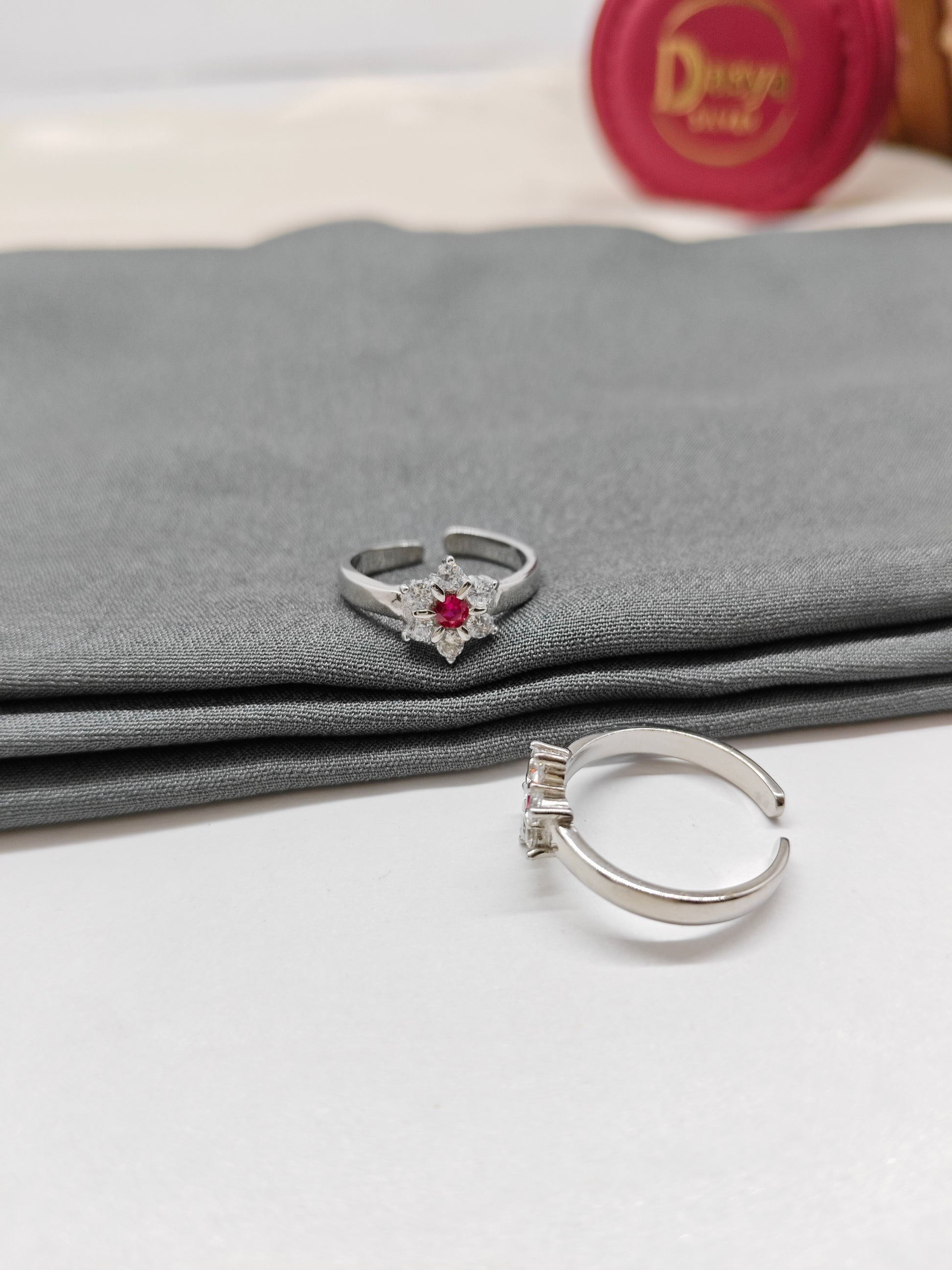 925 Silver Ruby With White Stone Star Design Toe Rings