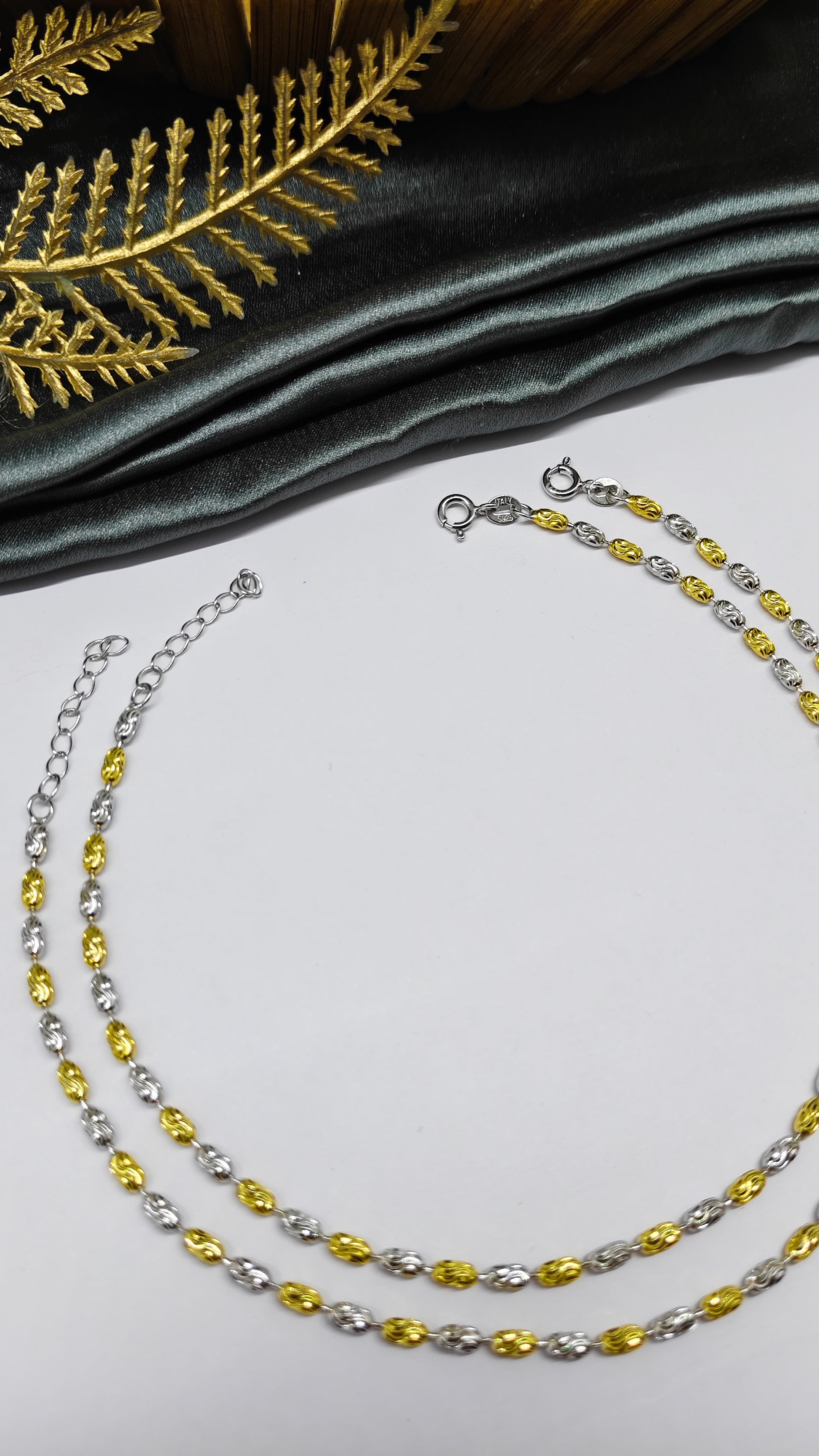 925 Silver Tow Tone Rose Gold-Gold Colour Beads Design Anklet Pair