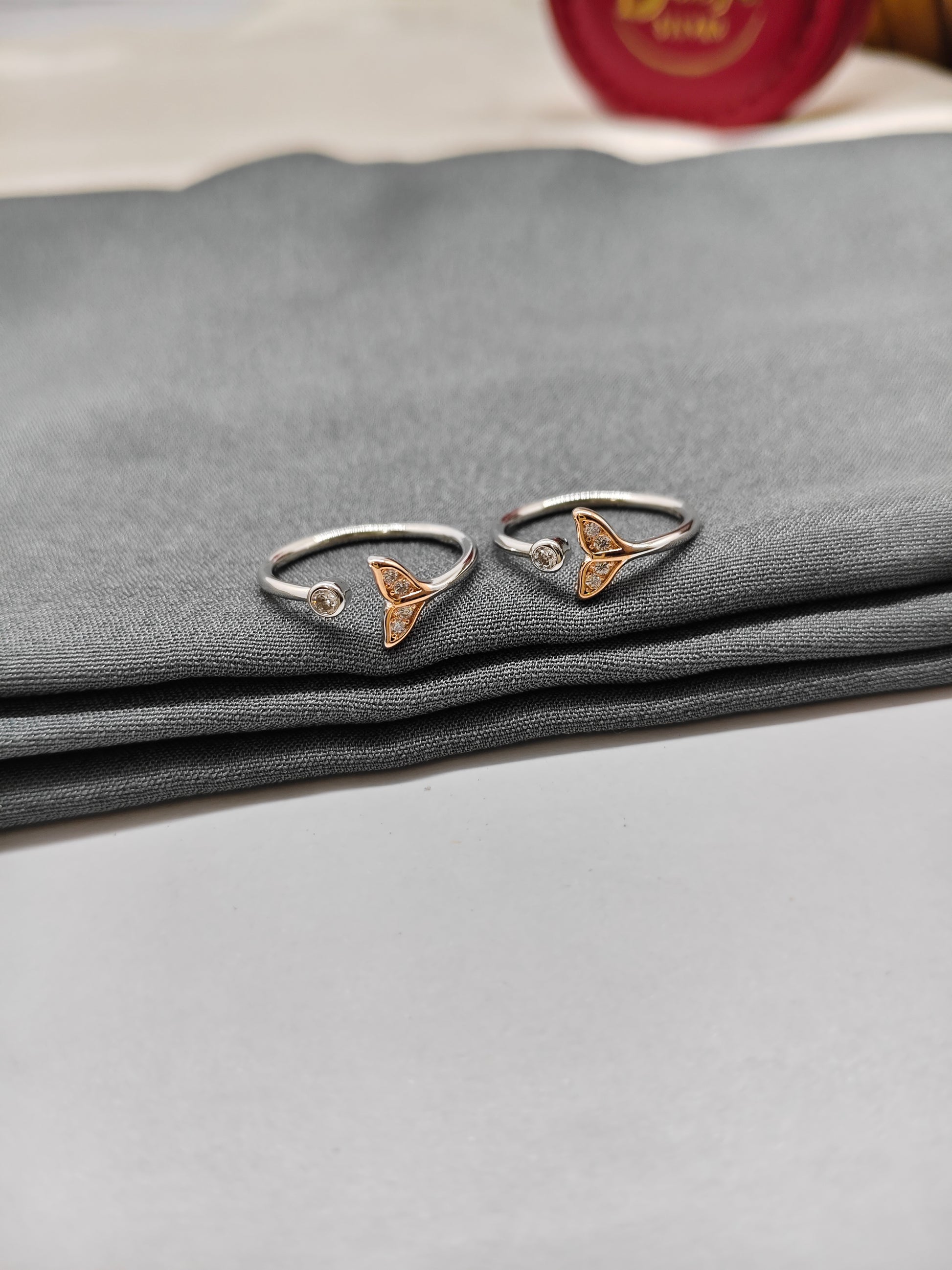 925 Silver Two Tone Rose With Silver Colour Fish Tail Design Toe Rings