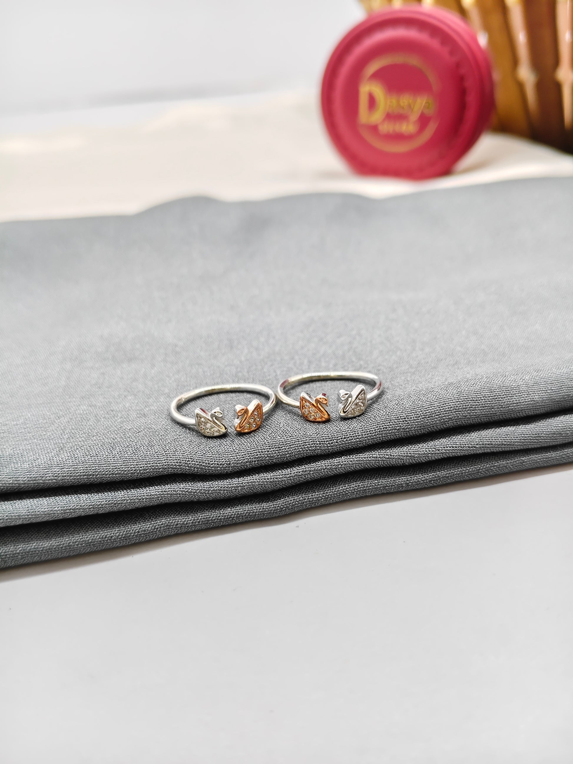 925 Silver Two Tone Rose With Silver Colour Swan Design Toe Rings