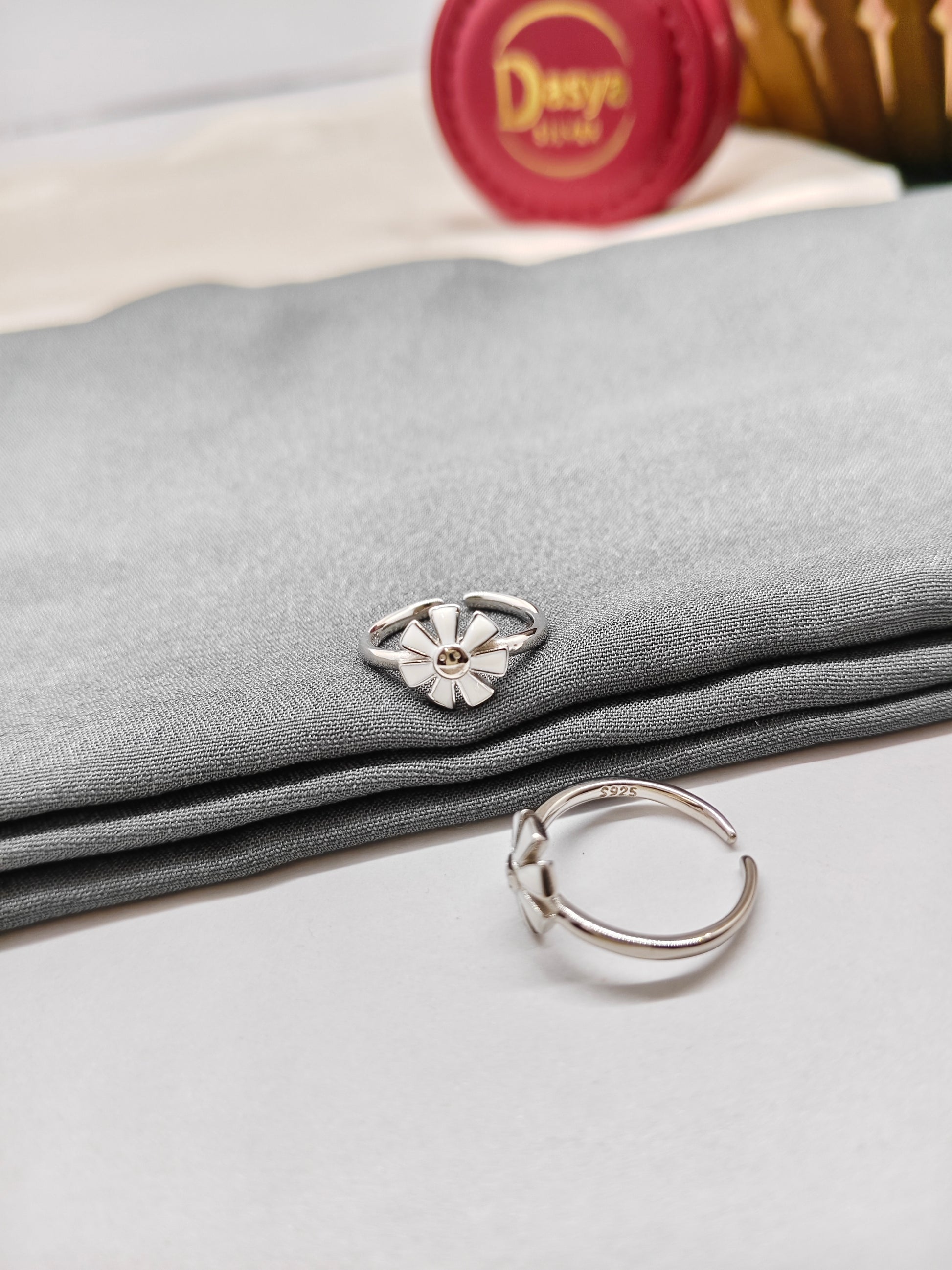925 Silver White Enamel Colour Flower Design Toe Rings