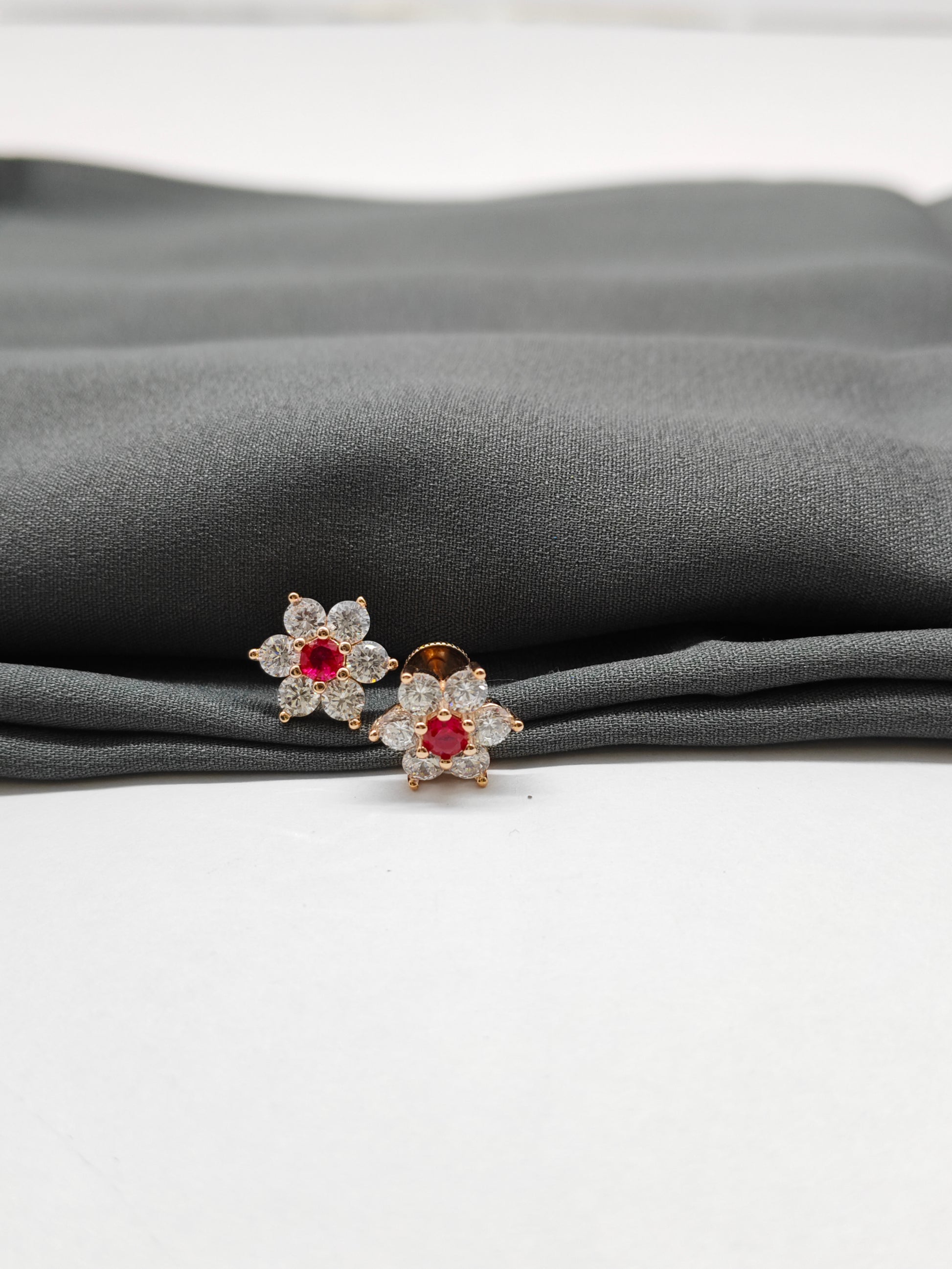 925 Silver Rose Gold Ruby Seven Stone Earrings